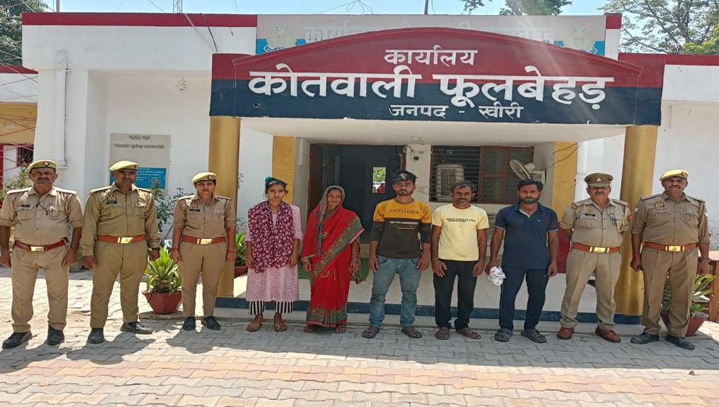 उल्लेखनीय है- कि दिनांक 13.06.2024 को थाना फूलबेहड़ पर एक युवती को मारने-पीटा से युवती की मृत्यु हो जाने के सम्बन्ध में पंजीकृत कराया था। श्रीमान पुलिस अधीक्षक खीरी द्वारा अभियोग के सफल अनावरण व वांछित अभियुक्तों की गिरफ्तारी हेतु अलग–अलग टीमें गठित की गयीं थीं। आज दिनांक 16.06.2024 को प्रभारी निरीक्षक थाना फूलबेहड़ को मुखबिर से सूचना मिली कि मुकदमा उपरोक्त मे आरोपी 05 अभियुक्त इस समय दाउदपुर मे मौजूद है तथा नेपाल भागने की फिराक में हैं। सूचना पर मौके पर पहुंचकर 05 नफर वांछित अभियुक्तों को गिरफ्तार किया गया। आवश्यक विधिक कार्यवाही की जा रही है ।