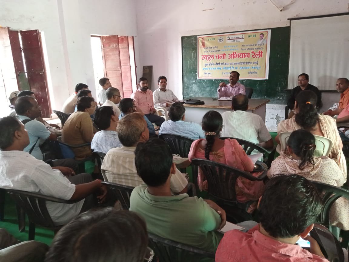 ब्लॉक संसाधन केंद्र कोल्हाई पर आयोजित संकुल शिक्षकों की बैठक में उत्तर प्रदेश सरकार की प्राथमिकता स्कूल चलो अभियान के अंतर्गत ब्लॉक के समस्त विद्यालयों में शत प्रतिशत नामांकन के लिए जोर दिया गया। खंड शिक्षा अधिकारी विनोद कुमार गंगवार की अध्यक्षता में बैठक का आयोजन किया गया । जिसमें खंड शिक्षा अधिकारी ने नवीन नामांकन को शीघ्र ही लक्ष्य के अनुरूप शत-प्रतिशत पूर्ण करने के निर्देश दिए। बीईओ ने कहा कि नामांकन हेतु हाउस होल्ड सर्वे के अनुसार चिन्हित किये गये सभी बालक- बालिकाओं के नामांकन कर रोजाना प्रेरणा पोर्टल पर अपलोड किया जाए। एआरपी राजन यादव,ओमप्रकाश, जमील अहमद ने ईंट भट्ठे पर काम करने वाले कामगारों,व गैर मान्यता प्राप्त विद्यालयों में पढ़ रहे बच्चों को सरकारी विद्यालयों में नामांकित कराते हुए ऑनलाइन रजिस्ट्रेशन करना है। स्कूल चलो अभियान के अंतर्गत प्रत्येक 6 से 14 वर्ष के बच्चो को नामांकित करना है ।
