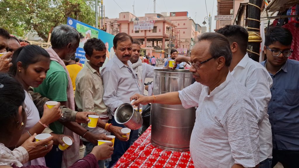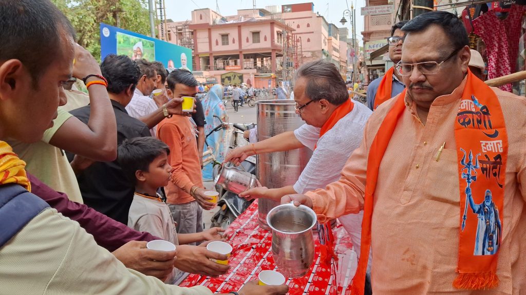 प्रधानमंत्री माननीय नरेंद्र मोदी के वाराणसी आगमन के अवसर पर सर्व वैश्य समागम द्वारा लायंस क्लब वाराणसी गंगा के सहयोग से लगभग 5000 से ज्यादा लोगों को बीसू जी मंदिर, मैदागिन के नीचे नींबू के शरबत का वितरण अपराह 2:00 बजे से शाम 6:00 बजे तक किया गया,, शरबत वितरण में संयोजक पिंकू अग्रहरि जी, दीपक अग्रवाल, आलोक शाह, रविंदर सेठ जी ईदू भूषण गुप्ता का विशेष सहयोग रहा, दीपक अग्रवाल पूर्व लायन गवर्नर ने बताया कि इस समय वाराणसी में भीषण गर्मी का प्रकोप चल रहा है, उसको देखते हुए यह आयोजन रखा गया है, और आगे इसका क्रम चलता रहेगा।