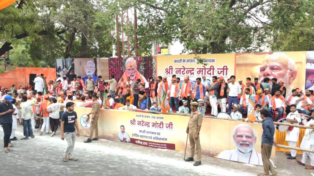 वाराणसी में प्रधानमंत्री नरेंद्र मोदी का हुआ जोरदार स्वागत।
