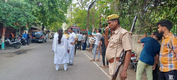 और मौके पर पहुंचे अधिकारी किसानों को समझाने का प्रयास कर रहे हैं।