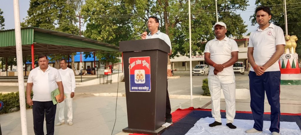 शाहजहांपुर।अशोक कुमार मीणा, पुलिस अधीक्षक, शाहजहाँपुर महोदय के निर्देशन में आज दिनांकः 21.06.2024, को पुलिस लाइन, शाहजहाँपुर के परेड ग्राउण्ड में 10वां अन्तर्राष्ट्रीय योग दिवस श्री मनोज कुमार अवस्थी, अपर पुलिस अधीक्षक, ग्रामीण, श्री संजय कुमार शाहजहाँपुर, अपर पुलिस अधीक्षक नगर, शाहजहाँपुर, श्रीमति सौम्या पाण्डेय, क्षेत्राधिकारी, नगर एवं सुश्री ज्योति यादव, क्षेत्राधिकारी कार्यालय, शाहजहाँपुर तथा योगाचार्यों की उपस्थिति में कराया गया।