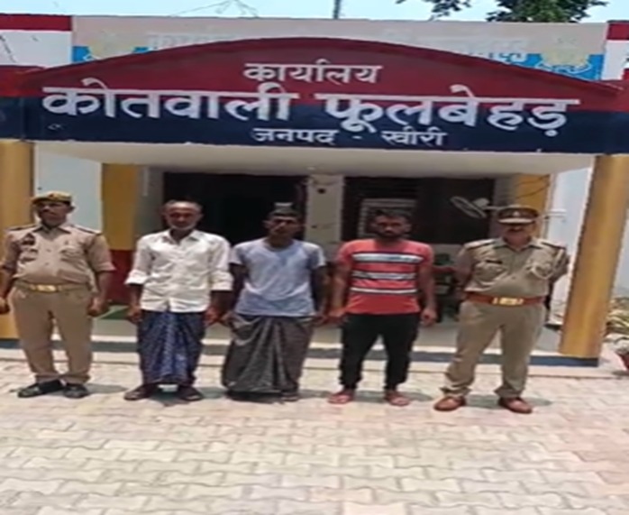 लखीमपुर : खीरी पुलिस अधीक्षक गणेश प्रसाद साहा के निर्देशन व अपर पुलिस अधीक्षक खीरी के निकट पर्यवेक्षण में संपूर्ण जनपद में अपराध की रोकथाम व वांछित/वारंटी अभियुक्तों की गिरफ्तारी के विरुद्ध चलाए जा रहे अभियान के अंतर्गत आज दिनांक 21.06.2024 को थाना फूलबेहड़ द्वारा मु0नं0 1653/23 धारा 147,148,452,323,504,506,427,325 भादवि0 में 3 वारण्टी अभियुक्तों को ग्राम गंगाबेहड़ से गिरफ्तार किया जिसके बाद विधिक कार्यवाही पूर्ण करते हुए न्यायालय के समक्ष भेजा जा रहा है।