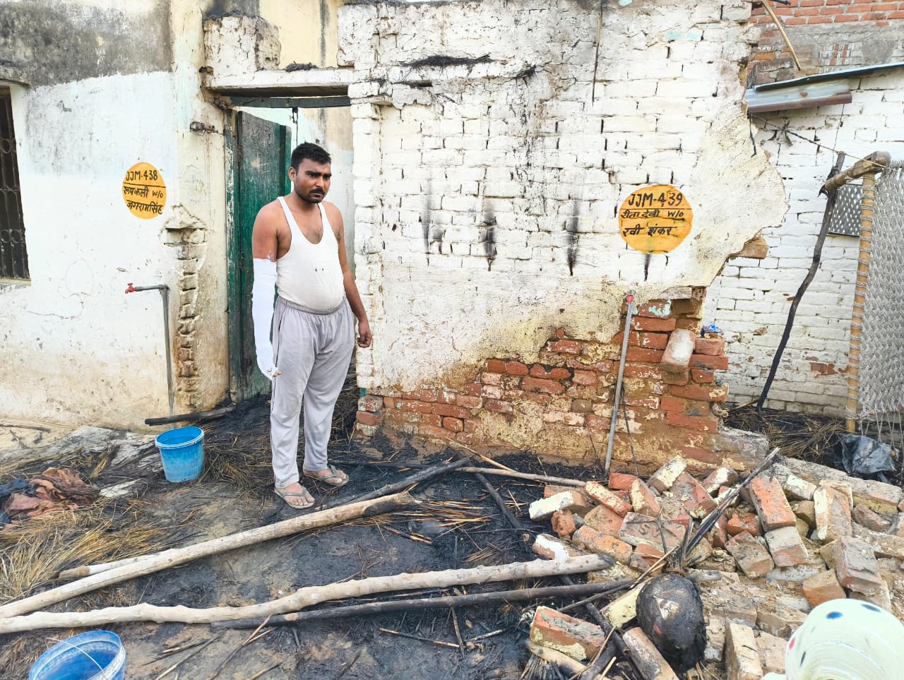दो घरों में लगी भीसड़ आग पड़ोसी युवक ने आग बुझाने का प्रयास किया लपटों की चपेट में आकर उसका हाथ भी बुरी तरह झुलस गया।
