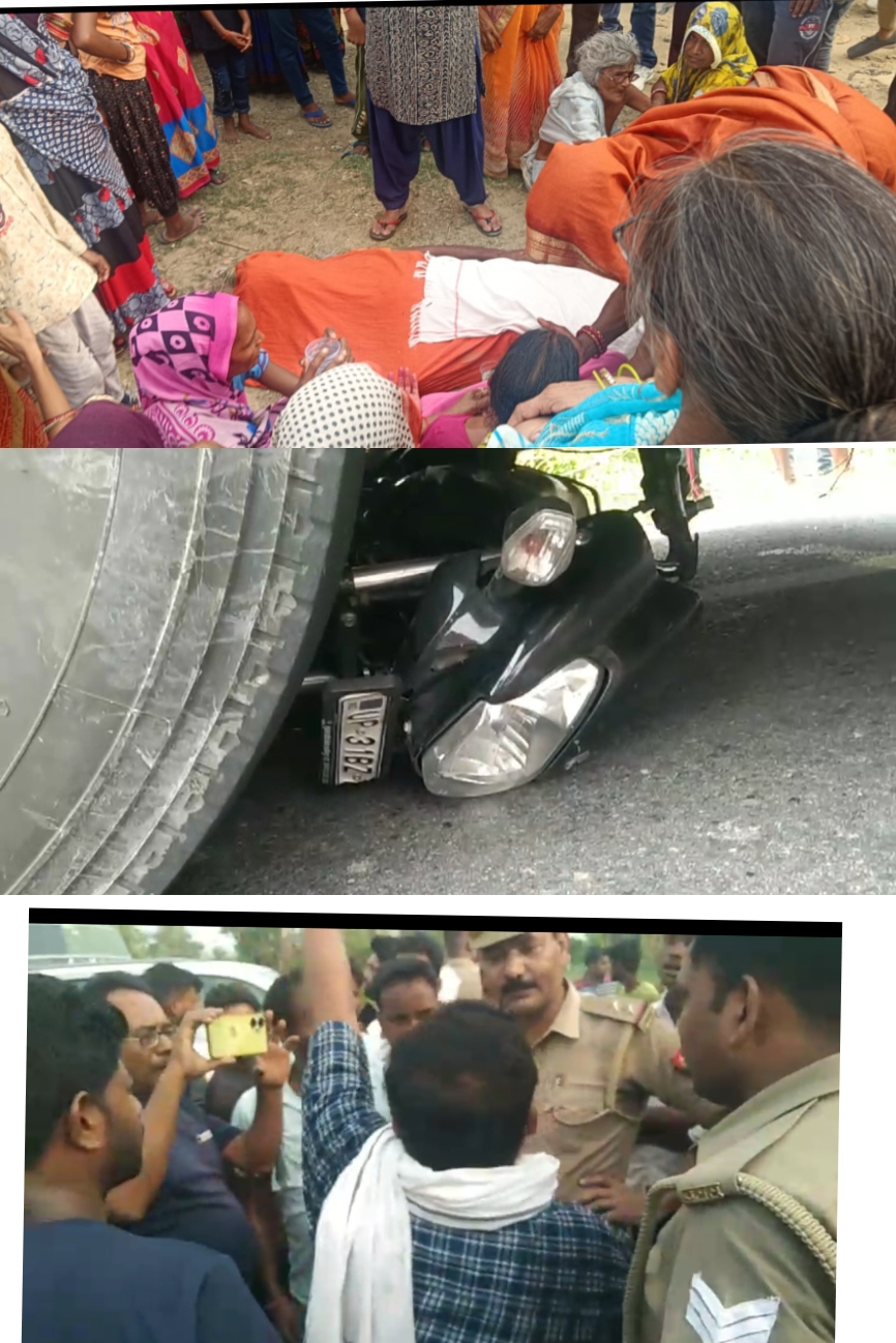 !! जनपद लखीमपुर के थाना फरधान के आधारपुर हनुमान मंदिर के सामने मोटरसाइकिल और जनरथ रोडवेज बस का एक्सीडेंट हुआ जिससे
