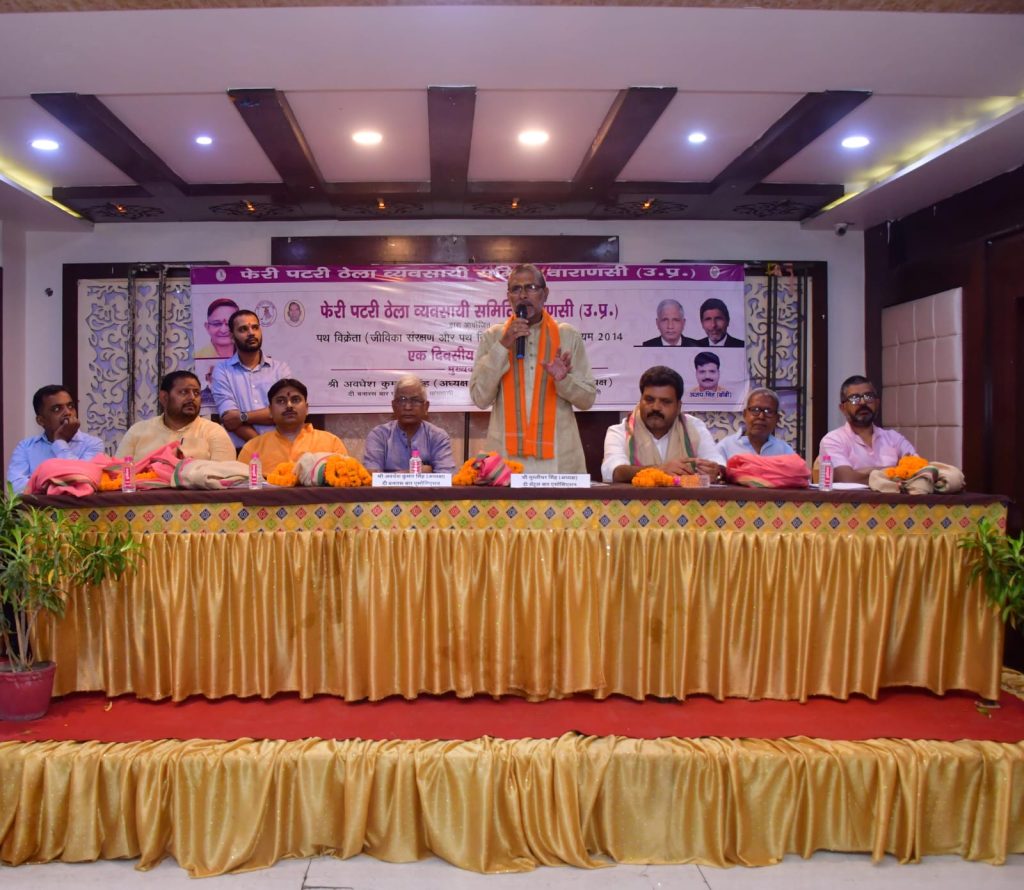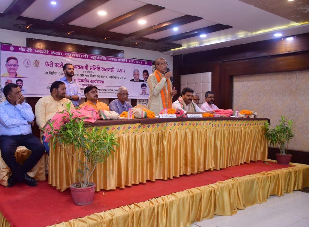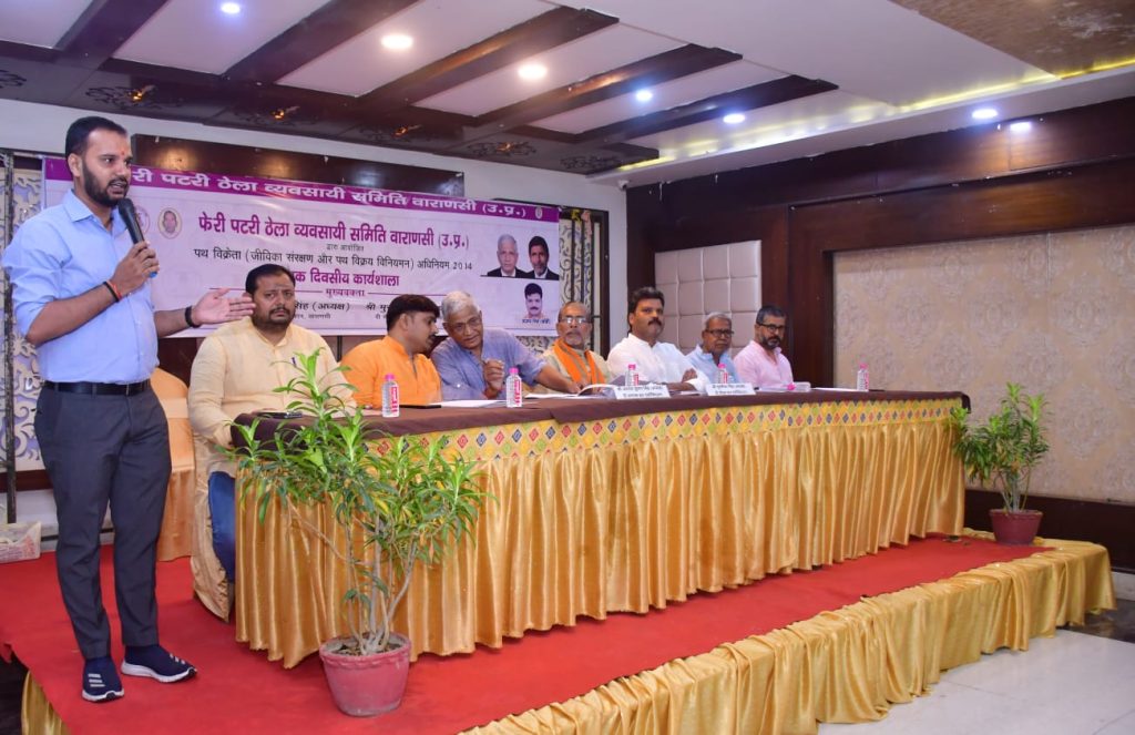 वाराणसी प्रताप पैलेस परेड कोठी में फेरी पटरी ठेला व्यवसायी समिति वाराणसी उत्तर प्रदेश द्वारा पथ विक्रेता (जीविका संरक्षण और पथ विक्रय विनियमन) अधिनियम 2014 विषय पर एक दिवसीय कार्यशाला का आयोजन किया गया।