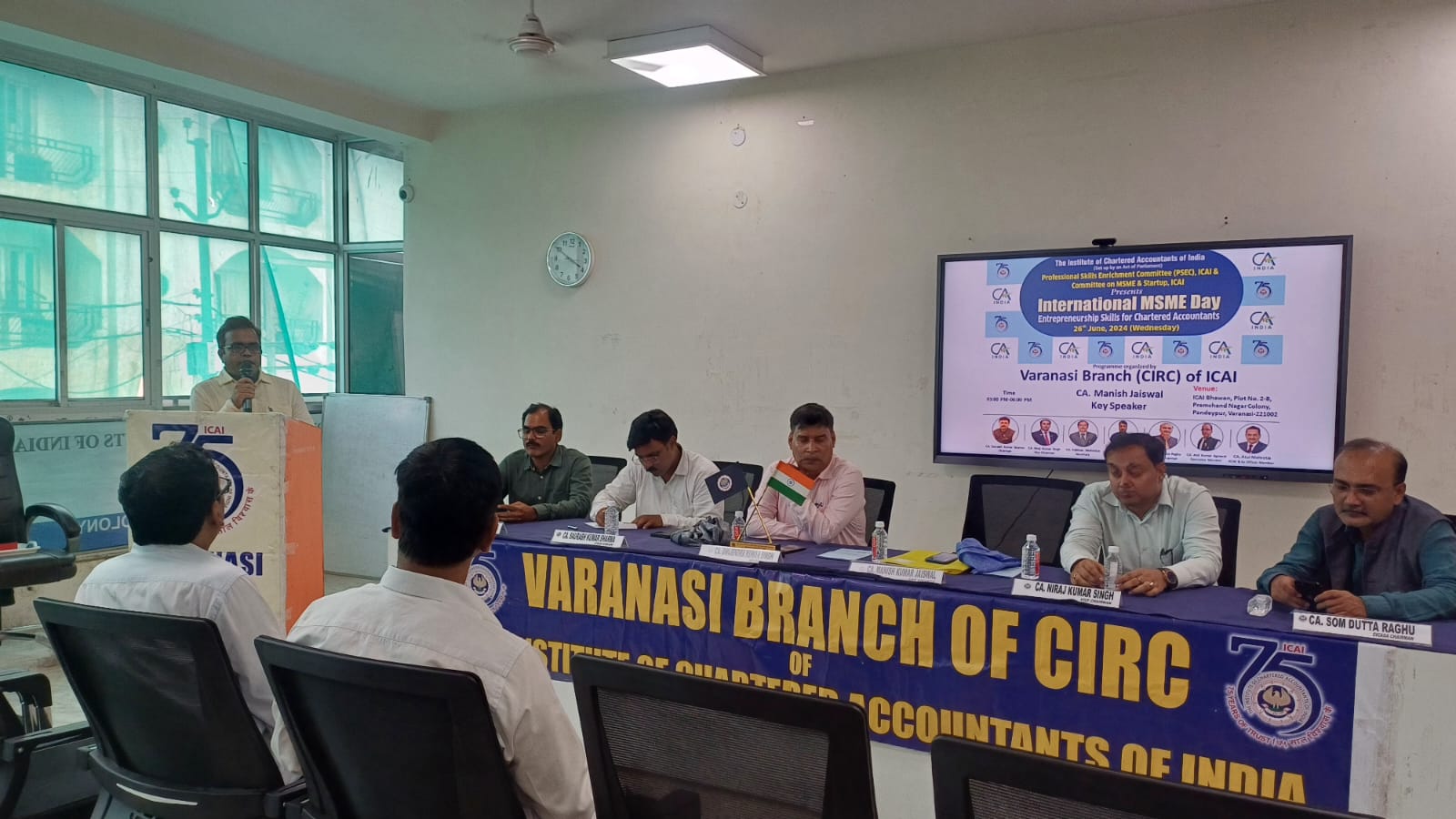 वाराणसी कार्यक्रम का शुभारम्भ शाखा अध्यक्ष सी.ए. सौरभ कुमार शर्मा के स्वागत भाषण द्धारा किया l