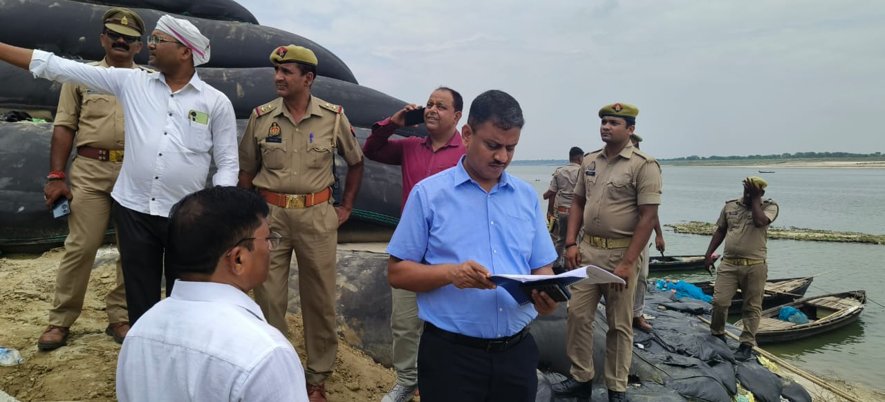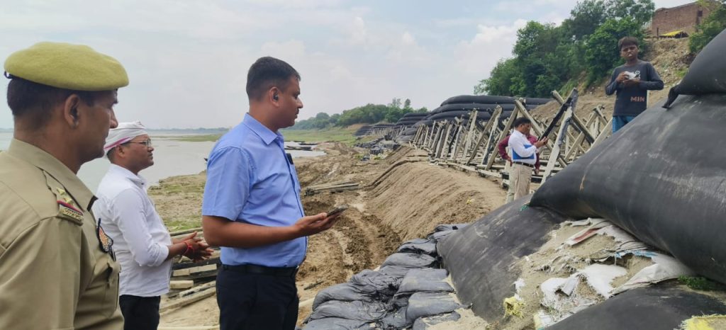 जिलाधिकारी ने ग्राम ढ़कवों की बाढ़ सुरक्षा हेतु किये जा रहे कार्यों का स्थलीय निरीक्षण किया।