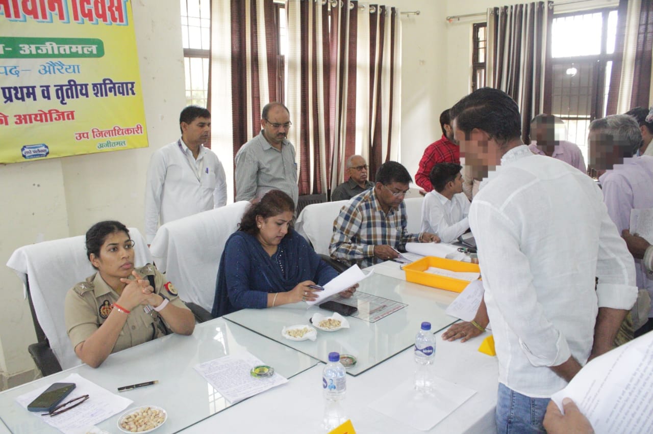औरैया अजीतमल- अजीतमल तहसील दिवस में जिलाधिकारी नेहा प्रकाश व पुलिस अधीक्षक चारू निगम कि अध्यक्षता मे सम्पूर्ण समाधान दिवस का आयोजन हुआ। उपस्थित अधिकारियों को निर्देशित करते हुए पुलिस अधीक्षक ने जनता की जो भी समस्याएं व शिकायतें हैं, संबंधित अधिकारी त्वरित कार्यवाही करते हुए समय सीमा के अंतर्गत उसका गुणवत्तापूर्वक निस्तारण करने हेतु निर्देशित किया। संपूर्ण समाधान दिवस के अवसर पर उपजिलाधिकारी व क्षेत्राधिकारी अन्य पुलिस अधिकारी व कर्मचारीगण अन्य संबंधित विभागों के जिला स्तरीय अधिकारी उपस्थित रहे।
