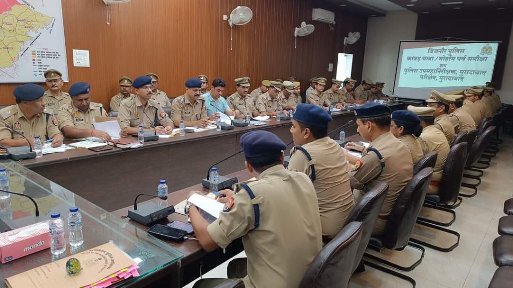 बिजनौर। मुरादाबाद डीआईजी ने त्योहारों को लेकर समीक्षा बैठक की। उन्होंने कहा कि पुलिस अधिकारी ताजिये और डीजे की हाईट पर विशेष ध्यान दें। उन्होंने चेताया कि त्योहारों पर किसी भी तरह की लापरवाही बर्दाश्त नहीं की जाएगी।मुरादाबाद डीआईजी मुनीराज जी ने सोमवार को पुलिस लाइन के सभागार में अधिनस्थों के साथ आगामी त्योहारों को लेकर समीक्षा बैठक की। डीआईजी ने कहा कि आगामी त्योहारों पर कोई नहीं परंपरा शुरू न हो।