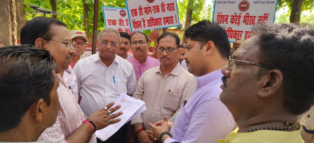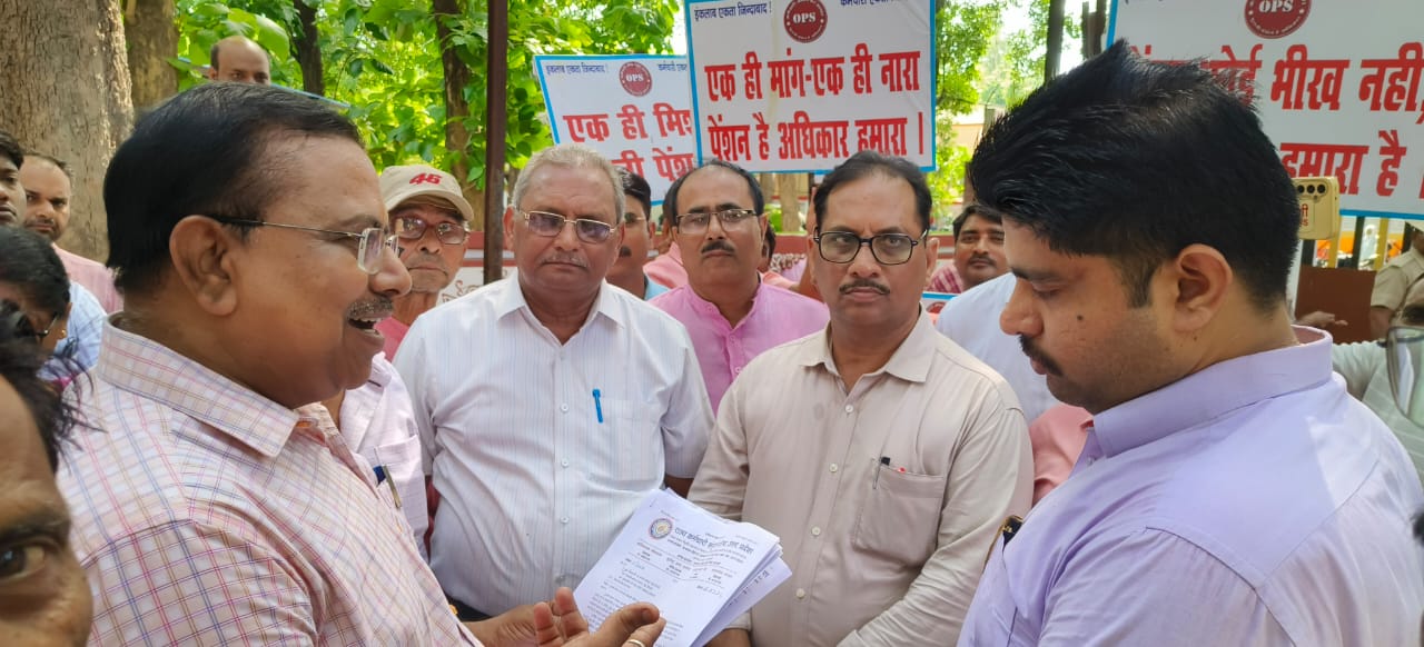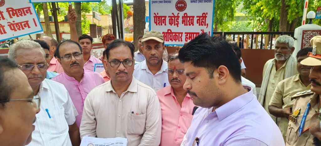 वाराणसी 16, जुलाई 2024।राज्य कर्मचारियों / शिक्षकों के लिए सेवानिवृत्ति पर देय पुरानी पेंशन व्यवस्था की बहाली हेतु सतत् कार्यरत “पुरानी पेंशन व्यवस्था बहाली संयुक्त मंच” के आहवान पर अखिल भारतीय स्तर पर चरणबद्ध आन्दोलनों की श्रृंखला में विगत 18 माह से लगातार धरना प्रदर्शन महारैली (लखनऊ एवं नई दिल्ली) का आयोजन किया गया था और सरकार की उदासीनता के कारण ही दिनांक 01 मई, 2024 से सम्पूर्ण हड़ताल की घोषणा कर दी गई थी। भारत निर्वाचन आयोग द्वारा 16 मार्च 2024 को लोक सभा सामान्य निर्वाचन 2024 की घोषणा के दृष्टिगत उक्त हड़ताल के कार्यक्रम को तत्समय स्थगित कर दिया गया था।दिनांक 05.07.2024 को राज्य कर्मचारी संयुक्त परिषद उ०प्र० की प्रान्तीय उच्चाधिकार समिति के निर्णयानुसार कर्मचारी समाज (कर्मचारी / शिक्षक) की बुढ़ापे में सहारा पुरानी पेंशन व्यवस्था की बहाली हेतु पुनः आन्दोलन करने का निर्णय लिया उक्त बातें शशिकान्त श्रीवास्तव जिलाध्यक्ष राज्य कर्मचारी संयुक्त परिषद ने बताते हुए कहा कि इसी क्रम में आज दिनांक 16 जुलाई को राज्य कर्मचारी संयुक्त परिषद द्वारा जिलाधिकारी के माध्यम से मा० प्रधानमंत्री व मा० वित्तमंत्री, भारत सरकार तथा मा० मुख्यमंत्री उ०प्र० सरकार को पुरानी पेंशन व्यवस्था की बहाली हेतु अनुस्मारक ज्ञापन दिए जाने से पूर्व मिनिस्टीरियल कलेक्ट्रेट कर्मचारी संघ भवन कचहरी पर जिलाध्यक्ष शशिकान्त श्रीवास्तव की अध्यक्षता में संक्षिप्त सभा की जिसका संचालन जिला मंत्री श्याम राज यादव ने किया ।तत्पश्चात् व मा० वित्तमंत्री, भारत सरकार नई दिल्ली तथा मा० मुख्यमंत्री, उ०प्र० सरकार लखनऊ को सम्बोधित ज्ञापन वाराणसी कलेक्ट्रेट कार्यालय के पश्चिमी द्वार पर अपराह्न उप जिलाधिकारी श्री पिनाक पाणि द्विवेदी जी को दिया ज्ञापन देते समय सर्वश्री शशिकांत श्रीवास्तव जिला अध्यक्ष श्याम राज यादव जिला मंत्री सुधांशु सिंह संप्रेक्षक सुरेंद्र पांडे वरिष्ठ उपाध्यक्ष दिवाकर द्विवेदी मंडल अध्यक्ष दीपेंद्र श्रीवास्तव मंडल मंत्री दिनेश सिंह अध्यक्ष कलेक्ट कर्मचारी संघ दिनेश कुमार सिंह अध्यक्ष विकास भवन कर्मचारी संघ,अवधेश पांडेय अध्यक्ष सिंचाई संघ ,सुभाष सिंह मंडल मंत्री यू0पी0एजुकेशनल मिनिस्ट्रियल एसोसिएशन,गीतांजलि राणा अध्यक्ष सुपरवाइजर संघ, अंजली शास्त्री अध्यक्ष आईटीआई कर्मचारी संघ, अध्यक्ष जी एस टी महेश श्रीवास्तव, वेद प्रकाश सिंह, विष्णु गुप्ता, अतुल सिंह,उत्तम कुमार, आशीष कुमार, प्रशान्त कुमार राय,मोहन गुप्ता,सूरज सिंह आदि उपस्थित रहे ।
