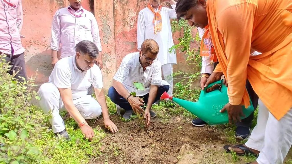 इसके बाद आयुर्वेद अस्पताल परिसर में सैकड़ों कार्यकर्ता संग एक पेड़ मां के नाम अभियान के तहत पूरे पार्क में वृक्षारोपण किया।