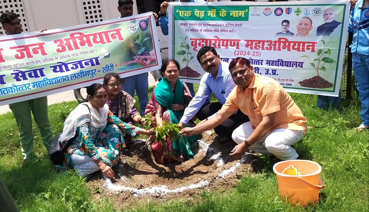 लखीमपुर खीरी।उत्तर प्रदेश शासन, लखनऊ, विश्वविद्यालय एवं जिला प्रशासन के निर्देशों के अनुपालन में वृक्षारोपण महाअभियान के तहत युवराज दत्त स्नातकोत्तर महाविद्यालय, लखीमपुर खीरी में आज दिनांक 20.07.2024 को पौधारोपण कार्यक्रम का आयोजन किया गया। इस अवसर पर प्राचार्य प्रो. हेमन्त पाल ने अपनी मां श्रीमती प्रेमा पाल के कर कमलों से वृक्षारोपण का शुभारम्भ करवाया। तत्पश्चात् चीफ प्राक्टर प्रो. सुभाष चन्द्रा, सांस्कृतिक परिषद संयोजक प्रो. नीलम त्रिवेदी, एन.सी.सी. प्रभारी प्रो. संजय कुमार, रोवर्स रेंजर्स प्रभारी प्रो. ज्योति पंत, व समस्त विभाग प्रभारी व एन.एस.एस. स्वयंसेवकों, छात्र/छात्राओं एवं शिक्षणेत्तर कर्मचारियों ने महाविद्यालय परिसर में विभिन्न प्रजातियों के पौधे लगाये।