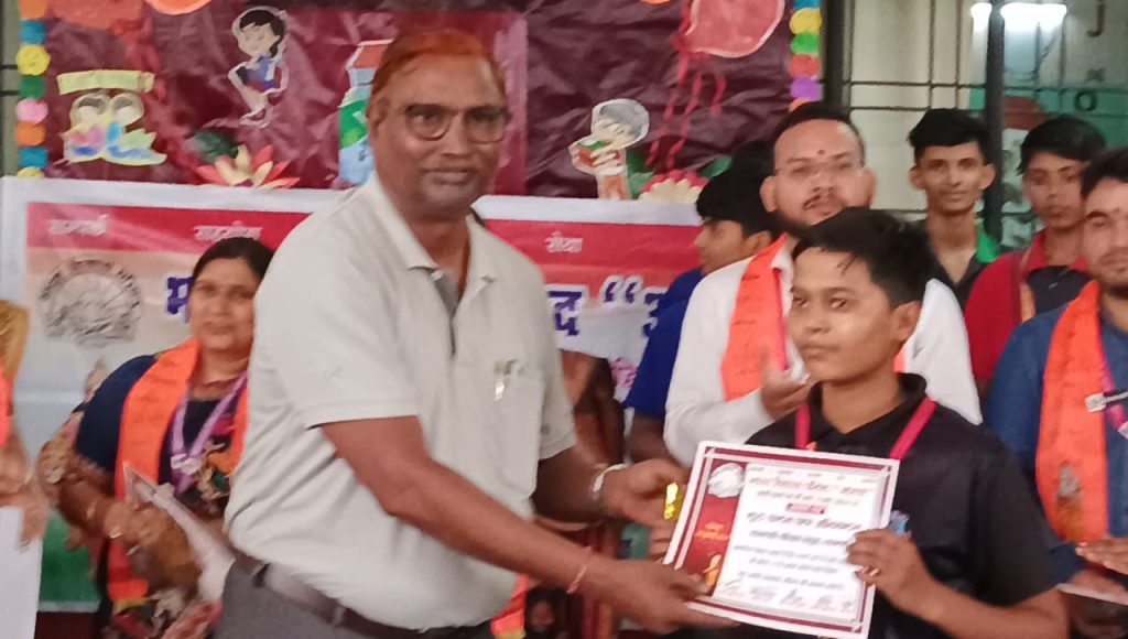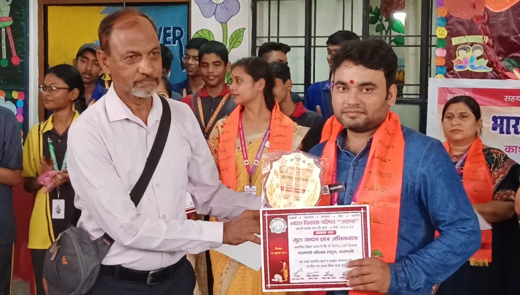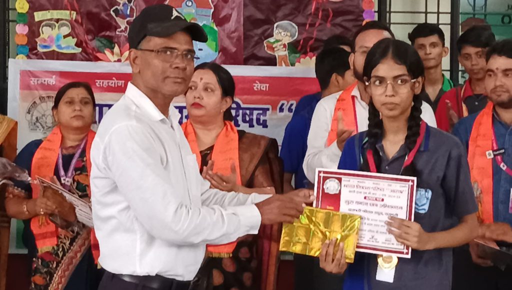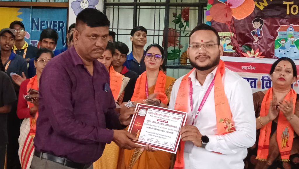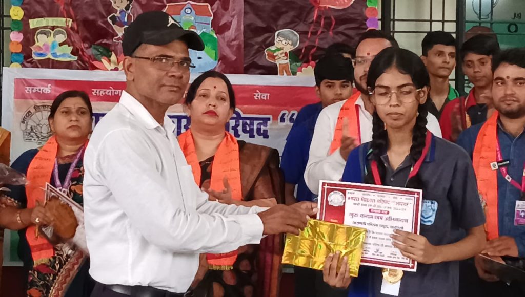 इसके बाद छात्रों द्वारा गुरुजन का चरण स्पर्श वंदन किया गया। शाखा द्वारा सभी गुरुजनों को प्रशस्ति पत्र व स्मृति चिन्ह प्रदान किया गया साथ ही गत वर्ष कक्षा 11 के परीक्षा में विभिन्न स्ट्रीम में सर्वोच्च अंक लाने वाले बच्चों को मेडल, प्रमाण पत्र व उपहार स्वरूप पुस्तक देकर पुरस्कृत किया गया।