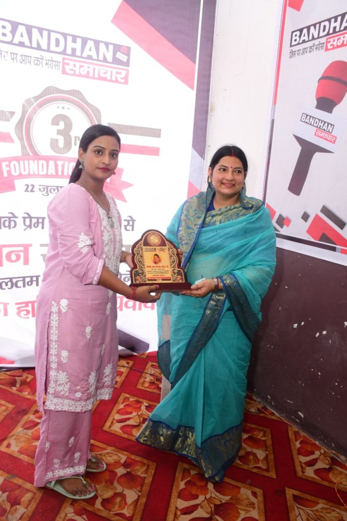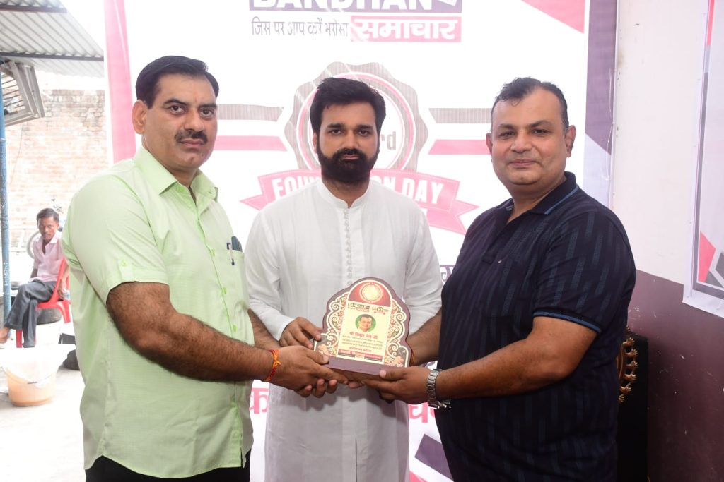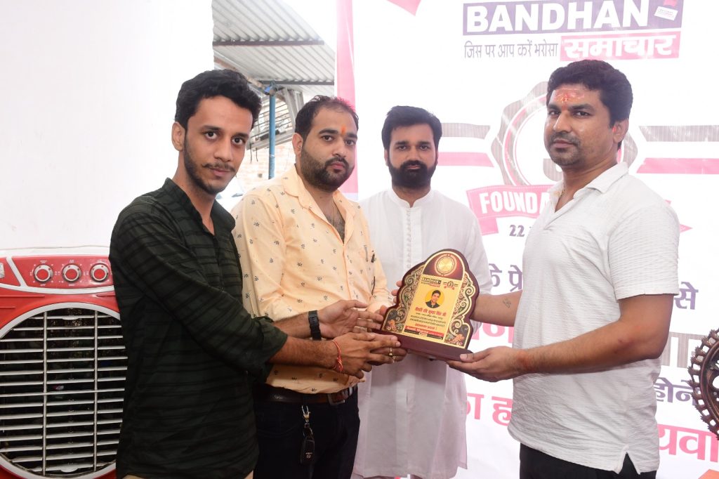 धामपुर (बिजनौर)। बंधन समाचार के तीसरे स्थापना दिवस पर कार्यक्रम का आयोजन स्योहारा रोड स्थित बंधन समाचार के मुख्य कार्यालय पर किया गया। सर्वप्रथम आचार्य डॉ दिनेष चंद्र भारद्वाज द्वारा मंत्रोच्चारण के साथ हवन यज्ञ किया गया, सभी ने हवन यज्ञ में आहूति दी, आरती कर हवन यज्ञ का समापन किया गया, और सभी को प्रसाद वितरण किया गया, कार्यक्रम में बतौर मुख्य अतिथि पहुंचे धामपुर के नगर पालिका परिशद के अध्यक्ष चौधरी रवि कुमार सिंह, ब्लॉक प्रमुख क्षमा हेमलता चौहान, अखिल भारतीय क्षत्रिय महासंघ के अध्यक्ष दीपेंद्र सिंह चौहान, श्री अग्रवंष वेलफयर सोसायटी के अध्यक्ष दिनेष चंद अग्रवाल नवीन, एडीओ पंचायत अनिल कुमार, द्वारा नटराज की प्रतिमा के समक्ष अवनी षर्मा के गायत्री मंत्र उच्चारण के साथ दीप प्रज्वल्लित कर किया गया, बंधन समाचार के तीसरे स्थापना दिवस के कार्यक्रम में सर्वप्रथम अवनी षर्मा द्वारा नृत्य की सुंदर प्रस्तुति दी गई जिसकी आये हुए अतिथियो द्वारा जमकर प्रषंसा की गई, साथ ही अतिथियो द्वारा अवनी षर्मा को स्मृति चिन्ह भेंट कर सम्मानित किया गया, स्थापना दिवस में आये मुख्य अतिथियो नगरपालिका परिशद के अध्यक्ष चौधरी रवि कुमार सिंह व ब्लॉक प्रमुख क्षमा हेमलता चौहान व धामपुर षुगर मिल के गन्ना महाप्रबंधक ओमवीर सिंह ने अपने संबोधन में कहा कि बंधन समाचार लगातार निश्पक्षता के साथ कार्य कर रहा है, हम इनके उज्जवल भविश्य की कामना करते हैं, साथ ही उन्होने कहा कि बंधन समाचार के माध्यम से जिला बिजनौर में होने वाली किसी भी प्रकार की घटना या कार्यक्रम की सूचना थोड़े ही समय में आप आम जनता तक पहुंचा देते हैं, साथ ही उन्होने बंधन समाचार के एमडी सुमित षर्मा व उनकी टीम को सफलतम तीन वर्श पूर्ण कर बधाई दी, और भविश्य में भी ऐसे ही कार्य करते रहने के लिए अपनी षुभकामना दी,