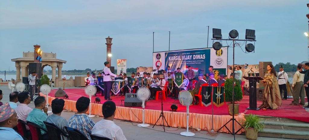 वाराणसी। कारगिल विजय दिवस के अवसर पर शुक्रवार को नमो घाट पर भव्य कार्यक्रम का आयोजन हुआ। काशी वंदन सांस्कृतिक कार्यक्रम में 39 जीटीसी गोरखा ट्रेनिंग सेंटर के संगीत बैंड द्वारा कई देश भक्ति धुनें पेश की गई। इस अवसर पर सैनिको द्वारा बैंड बाजा से "हर करम अपना करेंगे ऐ वतन तेरे लिए, दिल दिया है, जां भी देंगे, ऐ वतन तेरे लिए" धुन निकालकर कारगिल के वीर शहीदों को भावभीनी श्रद्धांजलि दी गई। इस अवसर पर जिलाधिकारी एस. राजलिंगम ने सेना के ब्रिगेडियर एवं सैनिक बैंड बाजा ग्रुप को स्मृति चिन्ह भेंट किया।