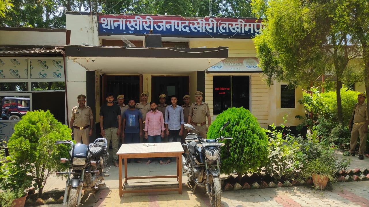 लखीमपुर खीरी।पुलिस अधीक्षक खीरी, गणेश प्रसाद साहा के निर्देशन व अपर पुलिस अधीक्षक(पूर्वी) खीरी व क्षेत्राधिकारी सदर के निकट पर्यवेक्षण में अपराध की रोकथाम व अपराधियों के गिरफ्तारी के अभियान क्रम में पुलिस टीम द्वारा मुखबिर की सूचना पर आज दिनांक 05.08.2024 को मु0अ0सं0 334/24 धारा 352/109 भारतीय न्याय संहिता 2023 व 9(1)A(1)/25(2) आर्म्स एक्ट भादवि में वांछित चार नफर अभियुक्त 1.प्रांशू सिंह उर्फ समीर सिंह पुत्र सुरेश सिंह 2.अभय प्रताप सिंह पुत्र अर्जुन सिंह नि0गण ग्राम साड़ीनामा थाना व जिला खीरी 3.निखिल गुप्ता उर्फ छोटू पुत्र वीरू गुप्ता नि0मो0 एकतानगर कस्बा ओयल थाना व जिला खीरी 4.निखिल अवस्थी उर्फ अभिषेक पुत्र सत्यप्रकाश अवस्थी नि0 ग्राम खागी ओयल थाना व जिला खीरी को गिरफ्तार कर अग्रिम विधिक कार्यवाही हेतु मा0 न्यायालय रवाना किया गया।