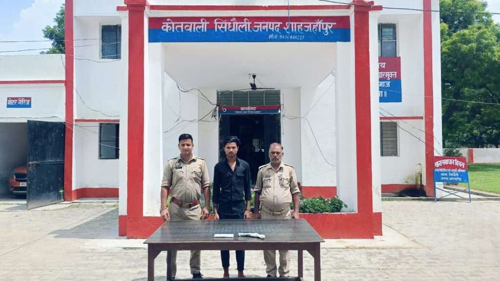 श्री अशोक कुमार मीणा, पुलिस अधीक्षक महोदय शाहजहाँपुर के निर्देशन में श्री मनोज कुमार अवस्थी , अपर पुलिस अधीक्षक ग्रामीण के कुशल पर्यवेक्षण एवं श्री पंकज पंत क्षेत्राधिकारी पुवायां के कुशल नेतृत्व में प्रभारी निरीक्षक सिंधौली व सिंधौली पुलिस टीम द्वारा रोकथाम अपराध व जुर्म जरायम व गिरफ्तारी वारण्टी व अवैध शस्त्र की रोकथाम के विरुद्ध चलाये जा रहे अभियान के क्रम में दिनांक-05.08.2024 को थाना सिधौली पुलिस द्वारा मुखबिर की सूचना पर अभियुक्त माहतिया उर्फ छोटेलाल S/O मोती नि0निकट मुर्गी फार्म अस्थाई झोपड़ी पुवायाँ रोड कस्बा व थाना निगोही जनपद शाहजहांपुर को मय एक अदद तमंचा 315 बोर व 01 अदद जिन्दा कारतूस 315 बोर के साथ भण्डेरी से ग्राम टिकरी की ओर समय 5.57 बजे गिरफ्तार किया गया । अभियुक्त माहतिया उर्फ छोटेलाल की निशा देही पर एक मोबाइल realme C-55 बरामद किया गया जो थाना हाजा पर चोरी से सम्बंधित मु0अ0सं0 361/2024 धारा 304/317(2) बीएनएस से सम्बन्धित है। अभियुक्त को हिरासत पुलिस में लेकर विधिक कार्यवाही कर मा0 न्यायालय के समक्ष पेश किया जा रहा है।