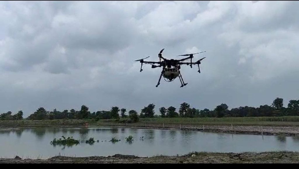 डीएम की अभिनव पहल, ड्रोन के जरिए शुरू कराया एंटीलार्वा का छिड़काव।