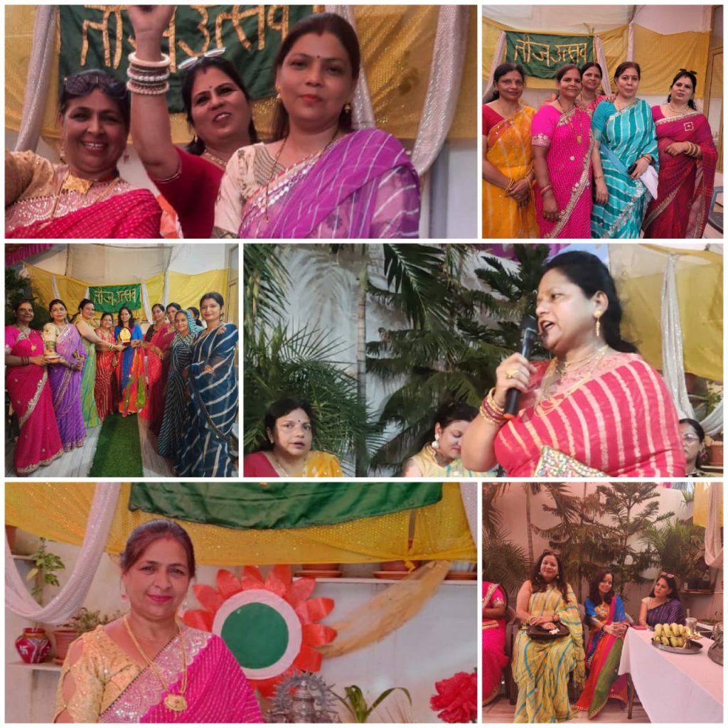 संगठन पदाधिकारियों राष्ट्रीय अध्यक्ष रेखा सिंह,राष्ट्रीय उपाध्यक्ष सोनू यादव जी,राष्ट्रीय संयुक्तमंत्री रीटा जौली जी, प्रदेश प्रभारी राजस्थान अनीता फौजदार जी, प्रदेश महासचिव राजस्थान आस्था मिश्रा जी, जिला मंत्री जयपुर तान्या शर्मा जी ने मयूर विहार कॉलोनी जगतपुरा जयपुर की अन्य प्यारी बहनों संग बहुत ही हर्षोल्लास के साथ लहरिया तीज उत्सव मनाया।