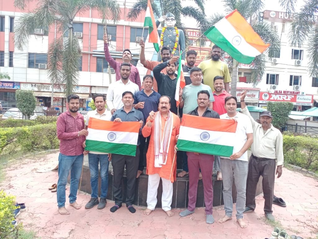 नीमच। भारतीय जनता पार्टी मध्य प्रदेश के निर्देशानुसार हर घर तिरंगा अभियान में शहीदों की प्रतिमा पर माल्यार्पण कार्यक्रम के तहत दीनदयाल मंडल नीमच के साथ विधायक दिलीपसिंह परिहार ने नेताजी सुभाष चंद्र बोस की प्रतिमा को साफ किया और माल्यार्पण कर नमन किया। कार्यक्रम में शामिल कार्यकर्ता भारत मां की जय के नारों के साथ में ही तिरंगे अपने हाथ में लिए आजादी का जोश भरते हुए नजर आ रहे थे।