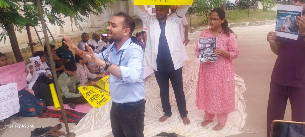 कोलकाता के पश्चिम बंगाल में महिला डॉक्टर के साथ दरिंदगी,रेप और हत्या जैसे शर्मनाक मामले में जनपद लखीमपुर खीरी के ङाक्टरों में भारी अक्रोश पनप रहा आज तीसरे दिन भी ओयल जिला पुरूष अस्पताल में डॉक्टरों और कर्मचारियों का जोरदार विरोध प्रदर्शन जारी रहा इस दौरान आने वाले मरीजों के तीमारदारों ने भी विरोध प्रदर्शन के समर्थन में नारेबाजी की