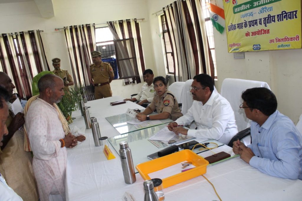 औरैया 17 अगस्त 2024 – जिलाधिकारी डॉ० इन्द्रमणि त्रिपाठी व पुलिस अधीक्षक चारू निगम ने अजीतमल तहसील सभागार में आयोजित संपूर्ण समाधान दिवस में शिकायती पत्र लेकर आने वाले फरियादियों के आवेदन पत्र लेते हुए संबंधित अधिकारियों को निर्देशित किया कि संपूर्ण समाधान में प्राप्त होने वाले प्रार्थना पत्रों को स्वयं संज्ञान लेते हुए समयबद्धता के साथ निष्पक्ष होकर निस्तारण सुनिश्चित करें यदि उसी मामले में पुनः कोई शिकायत प्राप्त होती है तो संबंधित अधिकारी की जिम्मेदारी निर्धारित करते हुए उसके विरुद्ध कार्यवाही की जाएगी। उन्होंने यह भी निर्देश दिए कि प्राप्त होने वाले प्रार्थना पत्र तहसील से पहुंचने में बिलंब होता है इसलिए विभागीय अधिकारी विभाग से संबंधित शिकायती आवेदन प्रार्थना पत्रों को स्वयं प्राप्त कर लें/ मंगवाना सुनिश्चित करें जिससे प्रार्थना पत्र समय से प्राप्त हो और शिकायतों का निस्तारण निर्धारित समय में सुनिश्चित हो सके।