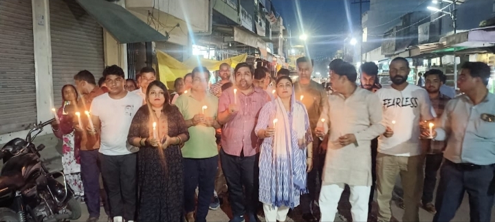 रात को कस्बे के मेडिकल,किराना व्यापारियों एवं संभ्रांत लोगों के साथ मिलकर कैंडल मार्च निकाला