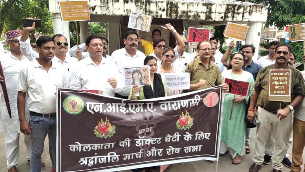 नेशनल इंटीग्रेटेड मेडिकल एसोसियेशन ( नीमा) वाराणसी द्वारा डा सुनील मिश्रा के नेतृत्व में तथा डा आर के यादव, डा बी एन रॉकी एवं डा विनय पाण्डेय के संयोजन में डा मोमिता देवनाथ की निर्मम हत्या के विरोध में बहुत ही आक्रोश भरा एक प्रोटेस्ट मार्च संपूर्णानंद संस्कृत विश्वविद्यालय से आज़ाद पार्क तक निकला गया। सदस्यों ने बहुत ही जोरदार तरीके से पश्चिम बंगाल की मुख्य मंत्री ममता बनर्जी की बर्खास्तगी के साथ ही वहां राष्ट्रपति शासन लगाने की मांग किया। ममता बनर्जी द्वारा डा मोमिता के हत्यारों को बचाने तथा साक्ष्यों को मिटाने में जुटी पश्चिम पुलिस के कृत्यों की घोर भर्त्सना की गई तथा नारी सुरक्षा एवं सम्मान की रक्षा का संकल्प लिया।