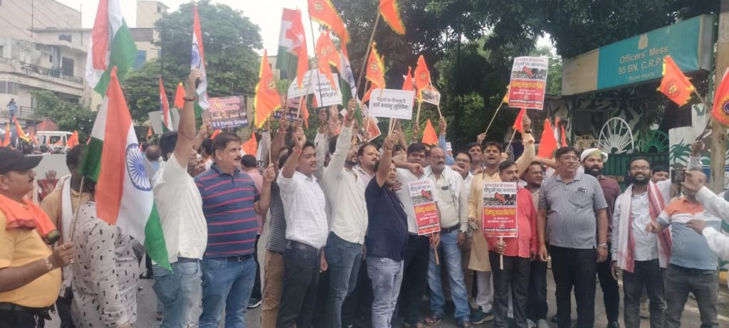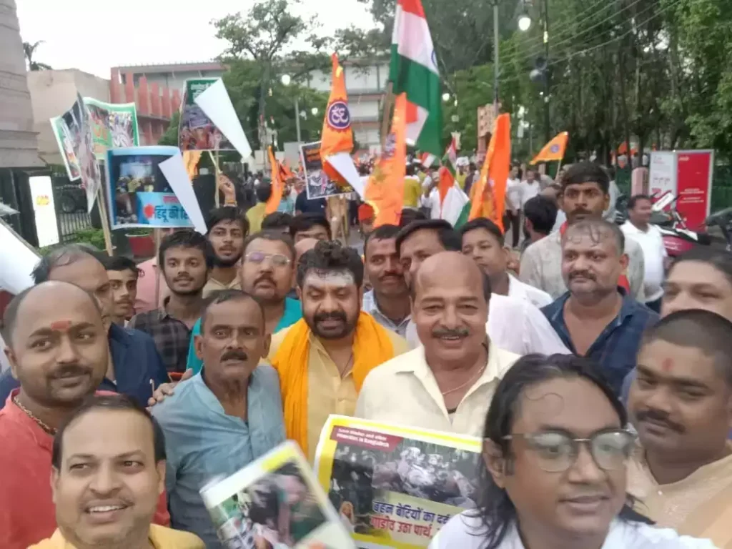 वाराणसी के विभिन्न क्षेत्रों से व्यापारी व आम जन इकट्ठे होकर जुलूस के रूप में सिगरा स्थित शहीद उद्यान पर इकट्ठे हुए। देखते ही देखते यह भीड़ जन आक्रोश रैली में बदल गई। शहीद उद्यान से रैली शुरू होकर भारत माता मंदिर पर समाप्त हुई। इस दौरान एक किमी तक की सड़क पूरी तरह से भगवा रंग में रंग गई।रैली में शामिल लोगों ने बांग्लादेश में फैली हिन्दुओं के प्रति हिंसा के खिलाफ आवाज़ बुलंद की। आक्रोश रैली में लोगों ने भारत माता की जय व बांग्लादेश मुर्दाबाद के नारे भी लगाये. वाराणसी में भारी बारिश के बावजूद रैली में भारी संख्या में लोग नजर आये. इस रैली में व्यापारी, महिलाएं, संत व आम जन शामिल हुए। इससे पहले व्यापारियों ने बंदी का आह्वाहन किया था