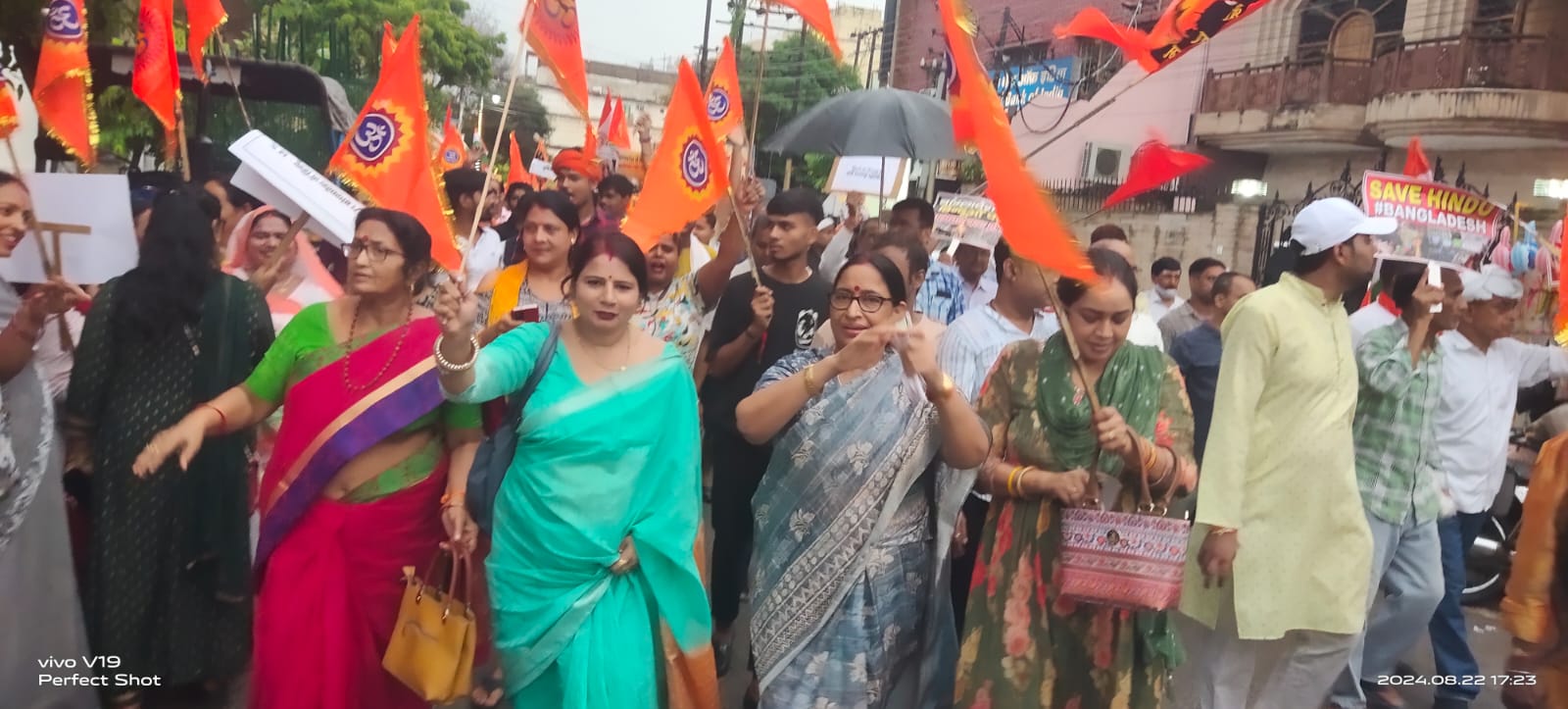 हाथों में भगवा झंडा एवं तिरंगा लेकर बांग्लादेश के खिलाफ मुर्दाबाद के नारे लगा रहे थे एवं जय श्री राम हर हर महादेव का भी नारा लगाया गया | वाराणसी के भारतीय जनता पार्टी के पिंडरा विधायक अवधेश सिंह अपने क्षेत्र से सैकड़ो लोगों को लेकर आक्रोश रैली में भी शामिल हुए पिंडरा विधायक अवधेश सिंह ने बताया जिस तरह से बांग्लादेश में हिंदुओं के ऊपर अत्याचार,बलात्कार एवं दुकानों को लूटा जा रहा है उसस हम भारतवासी बहुत ही आघात है हम काशीवासी बांग्लादेश को कड़ी निंदा करते हैं ऐसे कृतम काम करना बंद करें नहीं तो उसके परिणाम अच्छे नहीं है |