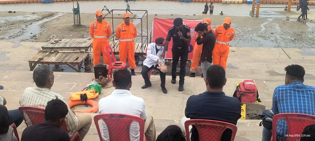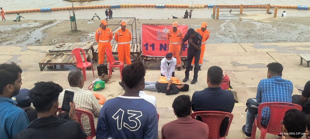 प्रयागराज एनडीआरएफ के आपदा प्रबंधन व प्रशिक्षण कार्यक्रम का सबसे बड़ा उद्देश्य आत्मनिर्भर, आत्मविश्वासी और अच्छी तरह से तैयार समुदाय से है, जो स्वतंत्र रूप से निर्णय ले सकता है और आपदा के स्थितियों में स्थानीय ज्ञान और संसाधनों का उपयोग कर बहुमूल्य जीवन को बचाने में मदद कर सकता है। इसे ध्यान मे रखते हुए आपदा जोखिम न्यूनीकरण और प्रबंधन योजना के तहत श्री मनोज कुमार शर्मा, उप महानिरीक्षक के दिशा-निर्देशन में 11 एनडीआरएफ वाराणसी की टीमें आपदा से बचाव एवं प्रबंधन हेतु बृहद पैमाने पर सामुदायिक जागरूकता स्कूल सुरक्षा, एवं क्षमता निर्माण कार्यक्रम के अभियान को चला रही है इसी कड़ी मे आगामी महाकुंभ-2025 के मद्देनजर आज दिनांक 24 अगस्त 2024 को, 11 एनडीआरएफ, वाराणसी की टीम 11K, निरीक्षक अनिल कुमार के नेतृत्व में नव निर्मित आपदा प्रबंधन प्राधिकरण, सेल्फी प्वाइंट, अरैल घाट , प्रयागराज(उत्तर प्रदेश) पर “सामुदायिक जागरूकता कार्यक्रम व क्षमता निर्माण कार्यक्रम” आयोजित कर आपदा प्रबंधन का प्रशिक्षण दिया गया।