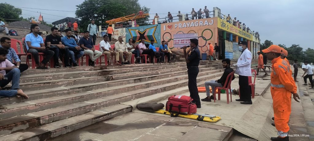 एनडीआरएफ के प्रशिक्षित एवं अनुभवी टीम , बांढ़ में बचाव के तरीके, बाढ़ की स्थिति में क्या करें और क्या न करें, सीपीआर, गले में फंसी बाहरी वस्तु के निकालने के तरीके, अस्पताल पूर्व के उपचार, तात्कालिक स्ट्रेचर बनाना, लिफ्टिंग और मूविंग के तरीके, इम्प्रोवाइज्ड फ्लोटिंग डिवाइस (राफ्ट) बनाना, आदि विभिन्न विषयों पर प्रशिक्षण प्रदान किया गया। इस कार्यक्रम के दौरान स्थानीय नाविक संगठन व स्थानीय नागरिक , पर्यटक तथा जिला-प्रयागराज के पी ए सी तथा सहायक आपदा सलाहकार- कड़ेदीन यादव ( पूर्व प्रभारी जल पुलिस) व आपदा प्रबंधन के कर्मचारियों ने बढ़ चढ़ कर भाग लिया तथा आपदा में राहत-बचाव की तकनीकों की बारीकियों को जाना। सभी लोगो ने एनडीआरएफ के इस कार्यक्रम को बहुत प्रशंसनीय और शिक्षाप्रद बताया।