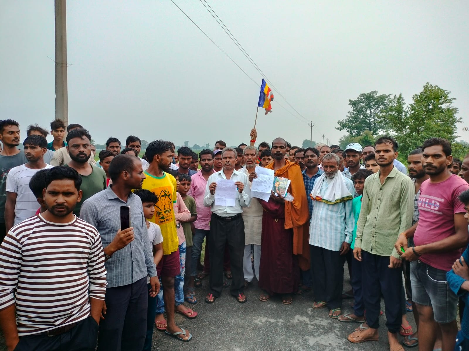 सोमवार को चर्चा सुनने को मिली कि वहां शहीद की मूर्ति लगाई जा रही है इसलिए हम सब बौद्ध भिक्षु विरोध करने के लिए एकत्रित हुए है हम शांति पुर्वक विरोध करेंगे l