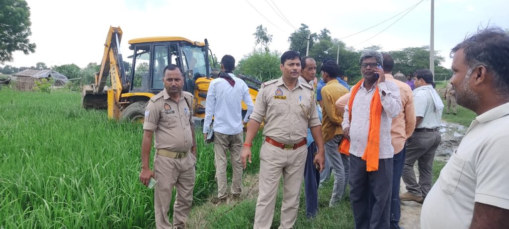 राजस्व व पुलिस टीम ने पहुंचकर चकरोड़ और खलिहान पर अवैध कब्जा हटवाया – करीब एक एकड़ खलिहान की जमीन को मुक्त कराया सहायल,औरैया। थाना क्षेत्र के ठाकुर गांव मे चकरोड़ पर कुछ ग्रामीणों ने कब्जा कर रखा था, वही गांव के बाहर पड़ी करीब 7 बीघा सरकारी जमीन पर भी कब्जा था. वही प्रशासन ने कब्जा मुक्त अभियान के चलते आज राजस्व टीम व पुलिस टीम के साथ पहुंचकर चकरोड़ का कब्जा हटवाया. खलिहान की जमीन को कब्जा मुक्त कराया। राजस्व टीम से आये लेखपाल गोपाल दीक्षित ने बताया की ठाकुर गांव मौजा मे पानी की टंकी से ग्राम तक चकरोड पर कुछ ग्रामीणों का कब्जा था. जिसको पैमाइश कर कब्जा मुक्त कराया गया. बताया 7 बीघा खलिहान को भी कब्जा मुक्त करा दिया गया है मौके पर थाना अध्यक्ष सहायल अमर बहादुर सिंह मौजूद रहें।