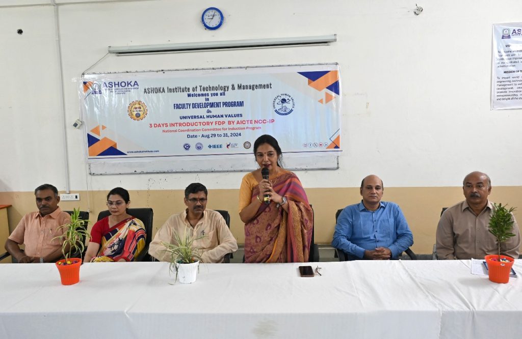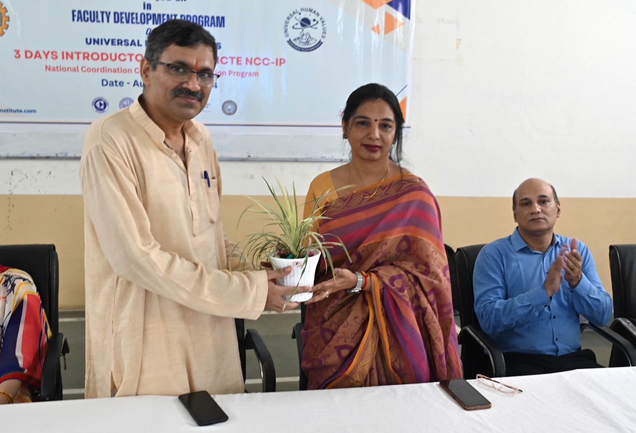 पहडिया स्थित अशोका इंस्टीट्यूट में वैल्यु एजुकेशन सेल अशोका एण्ड ए0आई0सी0टी0ई0, एन0सी0सी0, आई0पी0 द्वारा आयोजित सार्वभौमिक मानवीय मूल्य (यू0एच0वी0) वर्कशॉप में मानव की मूल चाहना और उसकी पूर्ति समग्र विकास और शिक्षा की भूमिका विषय पर आयोजित तीन दिवसीय कार्यशाला में गाजियाबाद से पधारे मुख्य वक्ता डा0 हिमांशु कुमार राय और असिसटेंट प्रो0 डा0 प्रियंका राय और प्रयागराज से आए आई0ई0आर0टी0 के असिसटेंट प्रोफेसर ऋशि राज राजन को पौध भेंटकर सम्मनित किया गया इस दौरान अशोका इंस्टीट्यूट ऑफ टेक्नोलॉजी एण्ड मैनेजमेंट की डायरेक्टर डा0 सारिका श्रीवास्तव ,डायरेक्टर फार्मेसी डा0 बृजेश सिंह और अशोका स्कूल ऑफ बिजनेस के प्राचार्य श्रीश श्रीवास्तव एवं शैक्षणिक अधिव्ठाता प्रो0 एस0 के0 शर्मा मंच पर उपस्थित रहे तत्पश्चात् अतिथियों द्वारा मां सरस्वती के चित्र पर पुष्पांजलि अर्पित कर व दीप प्रज्ज्वलित कर कार्यशाला का उद्घाटन किया गया।
