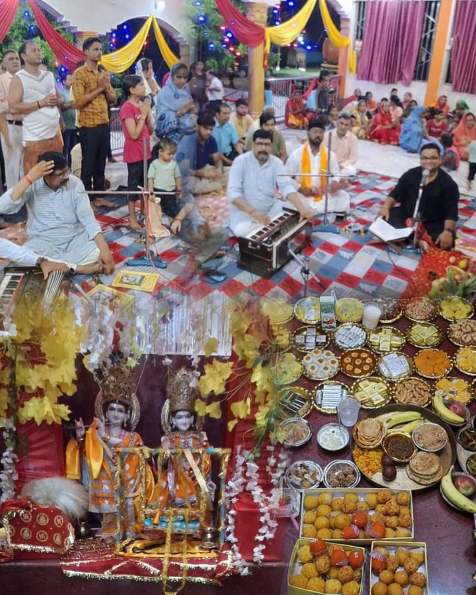 निचलौल:आदि शक्ति श्रीचंडी माता मंदिर परिसर स्थित श्री राधेकृष्ण मंदिर में बीते शाम भगवान श्रीकृष्ण का छठिहार उत्साव बड़े ही हर्सोल्लास के साथ मनाया गया, मंदिर समिति और सेवादारों की ओर से मंदिर में छप्पन प्रकार के व्यंजनों का भोग लगाया गया, इस दौरान संकट मोचन सेवादल के सदस्यों द्वारा मंदिर में श्याम प्रभु के भजनों