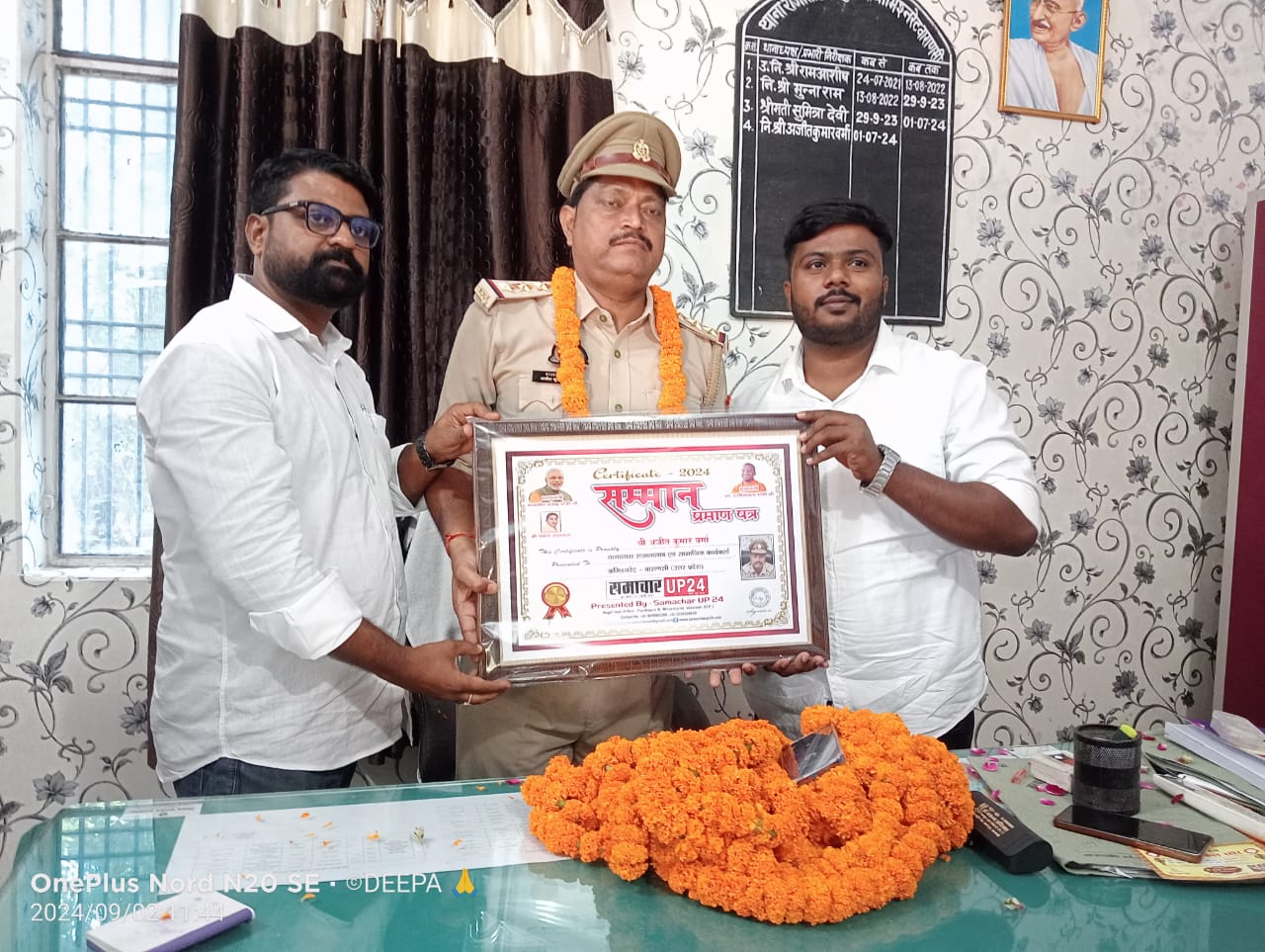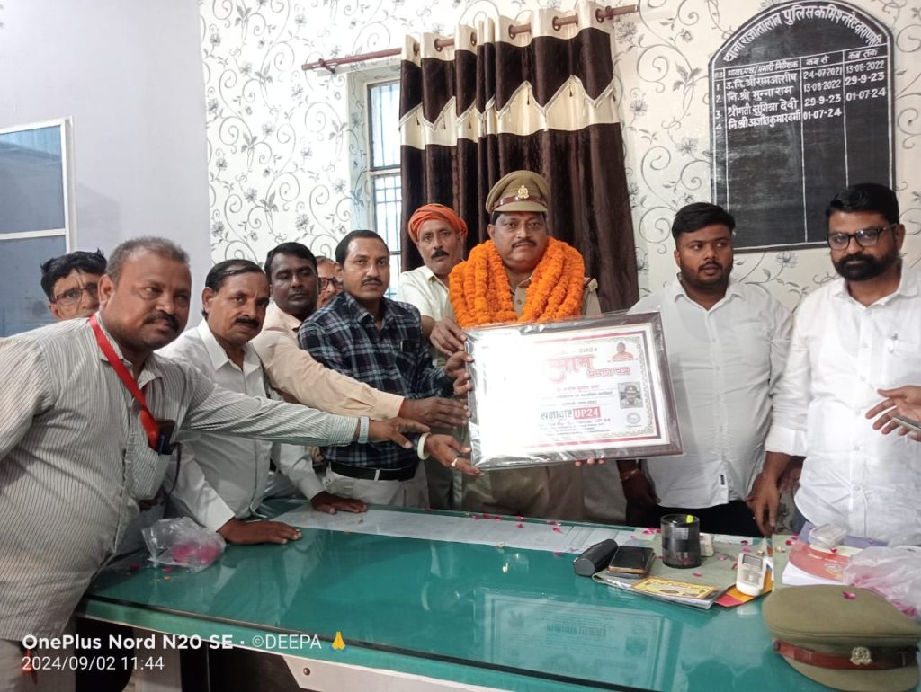 वहीं दूसरी तरफ जिला वाराणसी में स्थित राजातालाब के थानाध्यक्ष अजीत कुमार वर्मा को आज समाचार यूपी 24 न्यूज़ चैनल के दर्जनों पत्रकार साथियों के द्वारा सम्मान प्रमाण पत्र देकर सम्मानित किया गया