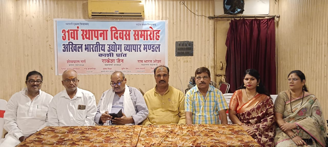 अखिल भारतीय उद्योग व्यापार मंडल का रथ यात्रा स्थित एक रेस्टोरेंट में 31 वां स्थापना दिवस बड़े धूमधाम से मनाया गया। इस अवसर पर उपस्थित व्यापारियों द्वारा व्यापार मंडल के अध्यक्ष श्री राकेश जैन को त्रिशूल भेंट किया गया। अखिल भारतीय उद्योग व्यापार मंडल के महानगर अध्यक्ष श्री राकेश जैन द्वारा बतलाया गया कि संगठन की स्थापना आज से 31 वर्ष पूर्व राष्ट्रीय अध्यक्ष श्री संदीप बंसल द्वारा की गई थी और हम सब हर साल व्यापारियों का सम्मान करते हैं 31 वर्ष संगठन का पूरा होने की खुशी में इस वर्ष भी अलग अलग क्षेत्र 31 व्यापारियों का सम्मान किया जा रहा है। श्री राकेश जैन ने बताया कि अखिल भारतीय उद्योग व्यापार मंडल की मांग पर प्रदेश में व्यापारी सुरक्षा प्रकोष्ठ का गठन हुआ है और प्रत्येक शहर में डीएसपी रैंक का अफसर उसका नोडल अधिकारी बनाया गया है जो कि पुलिस से संबंधित व्यापारियों की समस्याओं का त्वरित निदान कराएगा। इस अवसर पर उपस्थित प्रदेश के आयुष मंत्री श्री दयाशंकर मिश्र दयालु गुरु ने कहा कि देश के व्यापारी भामाशाह है इसलिए प्रदेश सरकार ने वर्ष का एक दिन व्यापारी दिवस के रूप में मनाने का फैसला किया है। प्रदेश सरकार व्यापारियों की सुरक्षा और विकास पर विशेष ध्यान दे रही है ।अब वह दिन गए जब व्यापारियों को प्रदेश में लूटा जाता था अब व्यापारी बेफिक्र होकर अपना व्यवसाय कर रहे है। इस अवसर उपस्थित महापौर श्री अशोक तिवारी जी ने कहा की नगर निगम द्वारा वृक्षारोपण माह चलाया जा रहा है जो लोग भी अपने कॉलोनी मोहल्ले में वृक्ष लगाना चाहते है वह नगर निगम से संपर्क करें नगर निगम द्वारा सभी सुविधाएं गद्दा खुदवाने से लेकर टी गार्ड लगाने तक पेड़ लगाने तक सब में नगर निगम पूरा सहयोग करेगा। महापौर द्वारा कहा गया की किसी भी शहर में शहर के विकास में उस शहर के व्यापारियों का बड़ा योगदान होता है आज मुझको व्यापारियों को सम्मानित करते हुए बड़ी प्रसन्नता मिल रही है। इस अवसर पर संस्था के महामंत्री राम भारत ओझा द्वारा संचालन किया स्वागत भाषण अध्यक्ष राकेश जैन द्वारा दिया गया। धन्यवाद ज्ञापन संगठन मंत्री राजू बाजोरिया द्वारा दिया गया। कार्यक्रम में रमेश केसरी दिनेश चौरसिया विनोद अग्रवाल अशोक जैन श्री विजय नारायण कपूर श्री कैलाश साहू इत्यादि व्यापारी नेता उपस्थित थे। इस अवसर पर महिला प्रकोष्ठ की अध्यक्ष श्रुति जैन व महिला महामंत्री पूनम मिश्रा द्वारा स्वागत गीत भी प्रस्तुत किया गया।राकेश जैन महानगर अध्यक्ष अखिल भारतीय उद्योग व्यापार मंडल