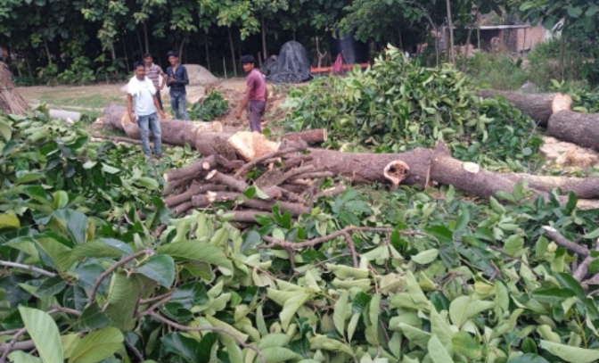महेशपुर वन रेज के ग्राम मझिगवा में माफियाओं द्वारा काटा गया तीनआम व एक बडहर का पेड़