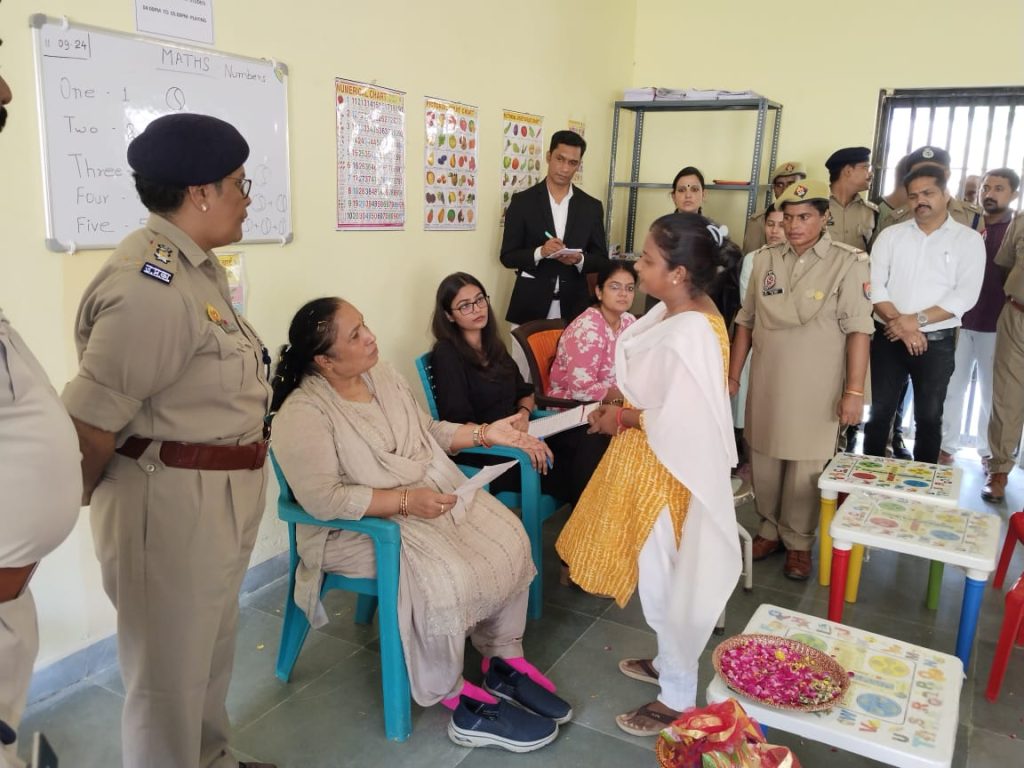 प्रयागराज।राष्ट्रीय महिला आयोग की मा0 सदस्य श्रीमती ममता कुमारी द्वारा अपने सहयोगी सुश्री सलोनी प्रभाकर,साइकोलाजिस्ट, राष्ट्रीय महिला आयोग के साथ तीन दिवसीय जनपद भ्रमण के दौरान 11 सितम्बर, 2024 को जिला जेल व सखी-वन स्टॉप सेंटर का निरीक्षण किया गया। जिला जेल का निरीक्षण करते हुये महिला बंदियों से वर्ता की गयी तथा उनके खान-पान, स्वास्थ्य सुविधाओं, शिक्षा व संगीत के विषय में जानकारी ली गई। महिला कैदियों द्वारा गीत संगीत का गायन किया गया। निरीक्षण के दौरान महिला कैदियों के बच्चो को खिलौने, फल आदि समाग्री वितरित की गई तथा जिला जेल की व्यवस्थाओं का निरीक्षण कर आवश्यक निर्देश भी दिया गया।