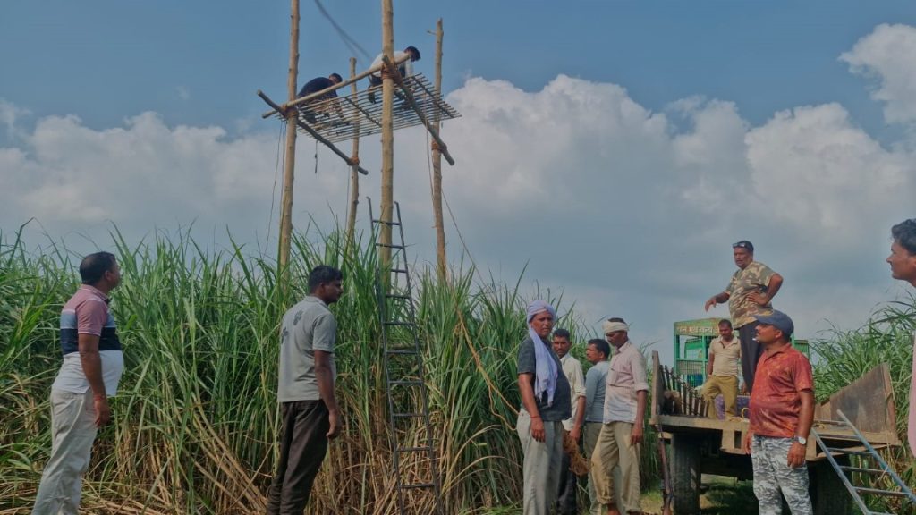 मोहम्मदी रेंज के अन्तर्गत बाघ प्रभावित क्षेत्र ग्राम मूड़ा अस्सी, मूडा जवाहर में मिली बाघ की लोकेशन पर टीम निगरानी बनाये हुये है।