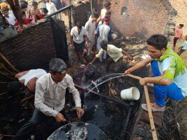 उघैती थाना क्षेत्र के गांव महानगर निवासी सत्यवीर पुत्र पोददार गरीबी में अपना आशियाना बनाकर जीवन यापन कर रहा था । वह अपने परिवार के साथ खेत पर गया हुआ था उस गरीब को क्या मालूम था जिस आशियाने के सहारे वह अपना जीवन यापन कर रहा है वापस आने तक वो खाक मिलेगा। ग्रामीणों ने जब गरीब के आशियाने से आग की लपटें देखीं । तो बेकाबू आग को बुझाने के लिए दौड़ पड़े।लेकिन जब तक वह आग पर काबू पाते तब तक बहुत देर हो चुकी थी । आशियाने में रखा खाने का अनाज के साथ साथ जरूरी सामन व लगभग तीस हजार की नगदी जल कर राख हो गई।