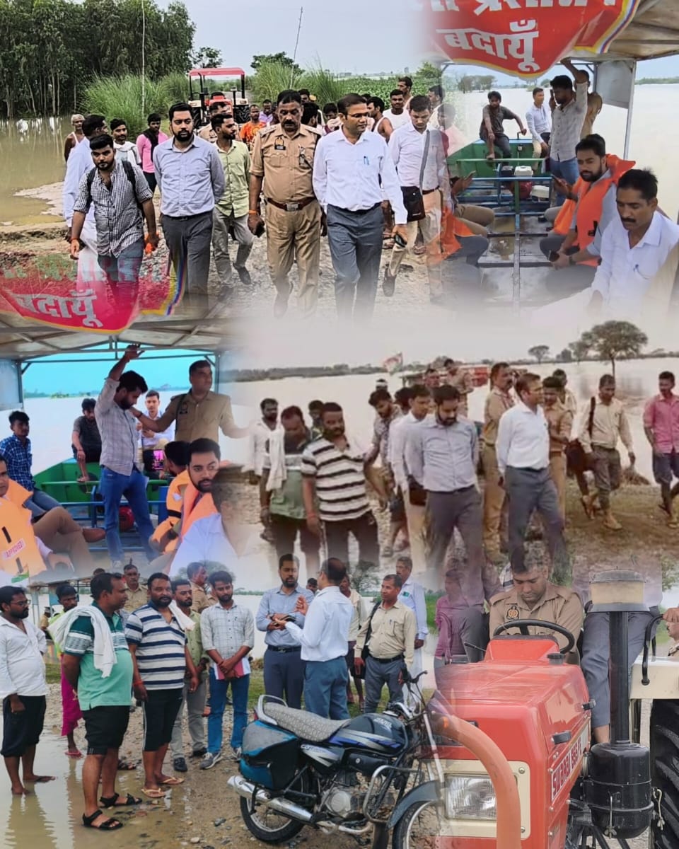 बदायूँ-दातागंज- क्षेत्रीय भाजपा विधायक राजीव कुमार सिंह के युवा सुपुत्र ब्लाक प्रमुख अतेन्द्र विक्रम सिंह ने उपजिलाधिकारी धर्मेन्द्र कुमार सिंह व पुलिस उपाधीक्षक के०के० तिवारी के साथ बाढ़ से प्रभावित नगरिया खनू रामगंगा पार क्षेत्र के गांवों में नाव व ट्रेक्टर के सहारे पहुंचकर प्रभावित लोगों से मिलकर उनकी समस्याओं को सुना।