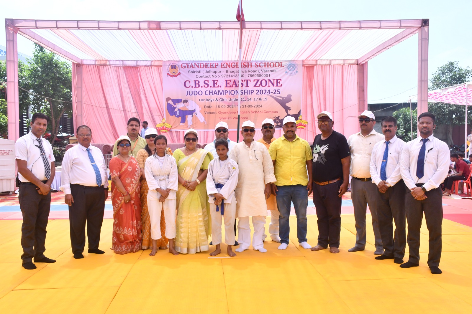 सी.बी.एस.ई ईस्ट जोन जूडो चैम्पियनशिप प्रतियोगिता 2024 के दूसरे दिन के मुख्य अतिथि ज्ञानदीप इंग्लिश स्कूल के चेयरमैन डॉ० आर० बी० सिंह, प्रबंध निदेशक डॉ० नीलम सिंह, जी के साथ राजेंद्र शर्मा (टूर्नामेंट डायरेक्टर) संजय गुप्ता (इंटरनेशनल रेफरी) राजेश भारद्वाज (नेशनल रेफरी) व विद्यालय के निदेशक श्री सिद्धार्थ गौतम सिंह जी, सह-निदेशक राज विजेंद्र सिंह उप-निदेशिका श्रीमती दिशा सिंह, सुप्रिया सिंह, विद्यालय की प्रधानाचार्य, श्रीमती प्रतिभा सिंह उपस्थिति रही।