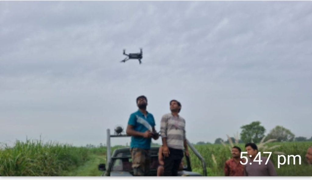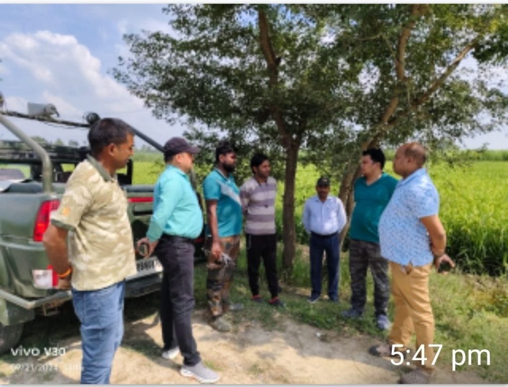 मोहम्मदी रेंज के बाघ प्रभावित क्षेत्रों में कराई गई काम्बिंग, कम्बिंग में थर्मल ड्रोन की ली जा रही सहायता ड्रोन से बाघ की गन्ने में की जा रही तलाश