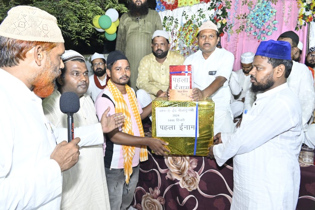 और निज़ामत शायरे इस्लाम कारी अख्तर रज़ा बरकाती ने की।महफिले मीलाद का आयोजन मास्टर मोहम्मद सुहेल व मोहम्मद शोएब अंसारी ने किया।जिसमें बड़ी तादाद में अकीदत मन्दों ने शिरकत की।इस मौके पर एक इस्लामी प्रतियोगिता का आयोजन किया गया जिसमें काफी तादाद में लोगों ने हिस्सा लिया।प्रतियोगिता की विजयी प्रतिभागियों को पुरस्कार देकर उनकी हौसला अफजाई की गई और उन्हें सम्मानित किया गया।मीलाद पाक का आगाज़ कुरआन की तिलावत से किया गया।इसके बाद मौलाना अशफाक रज़ा,हाफिज कमर आलम आरफी,गुफरान अहमद रज़वी और सैयद सलमान रिज़वी ने सरकारे दो आलम हजरत मोहम्मद मुस्तफा की सीरत और अज़मत बयान की।उनके व्यक्तित्व पर रोशनी डालते हुए आलिमों ने पैगम्बर-ए-इस्लाम के बताए हुए रास्ते पर चलने की अपील की।आलिमों ने अपनी तक़रीर में कहा कि हज़रत मुहम्मद मुस्तफा के बताए हुए रास्ते पर चलने में ही सबकी भलाई है।इस मौके पर
