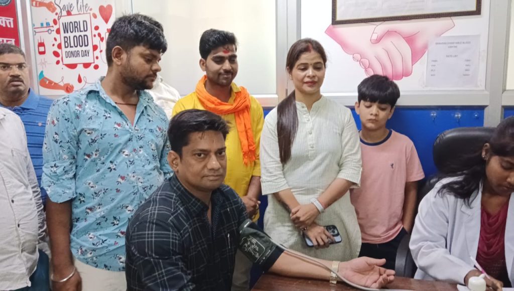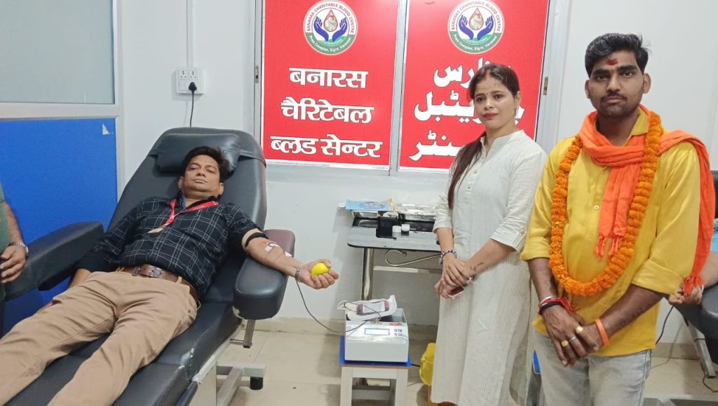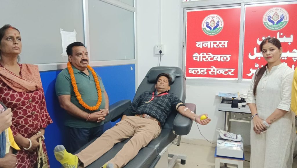 वाराणसी बताते चले कि आज वाराणसी महिला व्यापार मंडल अध्यक्ष सुनीता सोनी के पुत्र गौरव सोनी के जन्म दिवस पर रक्तदान शिविर का आयोजन बनारस चैरिटेबल ट्रस्ट सिगरा रोड पर किया गया ।रक्तदान शिविर में काशी की जनता ने बढ़ चढ़ कर हिस्सा लिया रक्तदान शिविर में 50 लोगों ने रक्तदान किया वाराणसी महिला व्यापार मंडल अध्यक्ष सुनीता सोनी ने बताया कि रक्तदान करने से कई लोगों का जीवन बचाया जा सकता है राजू सोनी ने कहा कि लोग अपने बच्चों के जन्मदिन पर लोगों को रक्तदान के लिए प्रेरित करें और एक वृक्ष जरूर लगाए ।रक्तदान के समय मुख्य रूप से वाराणसी महिला व्यापार मंडल अध्यक्ष सुनीता सोनी राजू सोनी