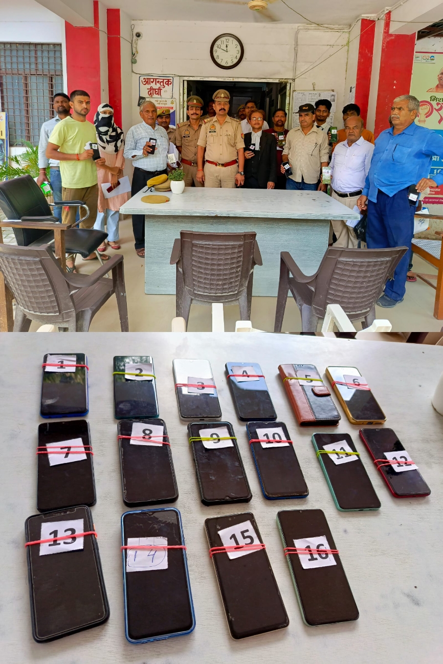 प्रयागराज श्रीमान् पुलिस आयुक्त कमिश्नरेट प्रयागराज के निर्देशन में अपराध एवं अपराधियों के विरुद्ध चलाये जा रहे अभियान के क्रम में श्रीमान् पुलिस उपायुक्त नगर व सहायक पुलिस आयुक्त झूंसी के पर्यवेक्षण में थानाध्यक्ष उपेन्द्र प्रताप सिंह के नेतृत्व में उ0नि0प्र0 अखिल ओझा, कम्प्यूटर आपरेटर मनोज कुमार यादव मय सीसीटीएनएस टीम थाना झूंसी व सर्विलांश सेल नगर कमिश्नरेट प्रयागराज के अथक प्रयास से थाना झूंसी क्षेत्र में गुम हुई मल्टीमीडिया मोबाइल फोन की रिकवरी किया गया था । थाना झूंसी द्वारा CEIR पोर्टल के माध्यम से Traceability Details के आधार पर गुम / खोये हुए मोबाइल में प्रयोग किये गये सिम नम्बरो का विवरण एवं उनकी लोकेशन के आधार पर 16 मल्टीमीडिया मोबाइल फोन बरामद किया गया था । आज दिनांक 25.09.2024 को थाना झूंसी कार्यालय में थानाध्यक्ष झूंसी द्वारा जांच के उपरान्त मोबाइल धारको को मोबाइल सुपुर्द किया गया । मोबाइल सुपुर्दगी का विवरण-क्र0 सं0आवेदक का नाम व पताCEIR COM. NO/DATEIMEI NO. माडल 1श्रीमती सीता देवी पत्नी बलराम बिन्द, निवासी भदकार नीबी कलां, थाना झूंसी, जनपद प्रयागराज, (CEIR PORTAL)202408070655543476Dt- 20.02.2024861175055825713861175055825705OPPO A552श्री अजय कुमार पुत्र बनवारीलाल, निवासी नीबी कलां थाना झूंसी, जनपद प्रयागराज- (CEIR PORTAL)202408221225528604Dt- 22.08.2024863718060481994VIVO V 23183श्री आदित्य राज पुत्र कृष्णराज, निवासी बेरूई गारापुर, थाना सरायइनायत, जनपद प्रयागराज – (CEIR PORTAL)202407021205128902DT. 02.07.2024864985060575260864985060575278Redmi 12 5G4श्री रिंकू यादव पुत्र शिवबाबू यादव, निवासी उस्तापुर महमूदाबाद, थाना झूंसी, जनपद प्रयागराज – CEIR202307261104584437DT. 26.07.2023864307053331330VIVO Y 205श्री मानिक चन्द्र मेंपुत्र लल्ला प्रसाद, निवासी नैका महीन, थाना झूंसी, प्रयागराज, – (CEIR PORTAL)202408221107236052Dt. 22/08/2024865559050231439/10865559050231447/10Redmi Note 10 PRO Max6श्री एन0के0 चौधरी पुत्र कृष्ण कुमार सरोज, निवासी न्याय नगर कालोनी चक झूंसी थाना झूंसी, जनपद प्रयागराज, – (CEIR PORTAL)202407110905150153DT. 11/07/2024861679062476840861679062476857Red6श्री एन0के0 चौधरी पुत्र कृष्ण कुमार सरोज, निवासी न्याय नगर कालोनी चक झूंसी थाना झूंसी, जनपद प्रयागराज, – (CEIR PORTAL)202407110905150153DT. 11/07/2024861679062476840861679062476857Redmi 7श्रीमती नीतू चौरसिया पत्नी विनायक चौरसिया, निवासी मानस बिहार कालोनी झूंसी, थाना झूंसी, जनपद प्रयागराज, – (CEIR PORTAL)202406171048427135Dt. 17/06/2024860239060952572OPPO K10 5G8श्री अमित गुप्ता पुत्र निवासी आवास विकास कालोनी योजना0 3 झूंसी, थाना झूंसी, जनपद प्रयागराज – CEIR202407050957443844Dt. 03.07.2024868903051846018868903051846000Realme Narzo9श्री वेद प्रकाश शुक्ला पुत्र कौशलेश प्रसाद शुक्ला, निवासी गंगा पुरम कालोनी नैनी, थाना नैनी जनपद प्रयागराज , 9696361356- (CEIR PORTAL)202405091138404992Dt. 09/05/20248612970580943190086129705809430100VIVO Y210910श्री हरिशंकर पटेल पुत्र , निवासी एल0आई0जी0 आवास विकास कालोनी झूंसी थाना झूंसी, प्रयागराज, – (CEIR PORTAL)202401181053246892DT. 18.01.202486325104116553686325104116528OPPO A9 202011श्री के0एन0 भट्ट, निवासी गोविन्द बल्लभ पन्न इन्स्ट्यूट, थाना झू