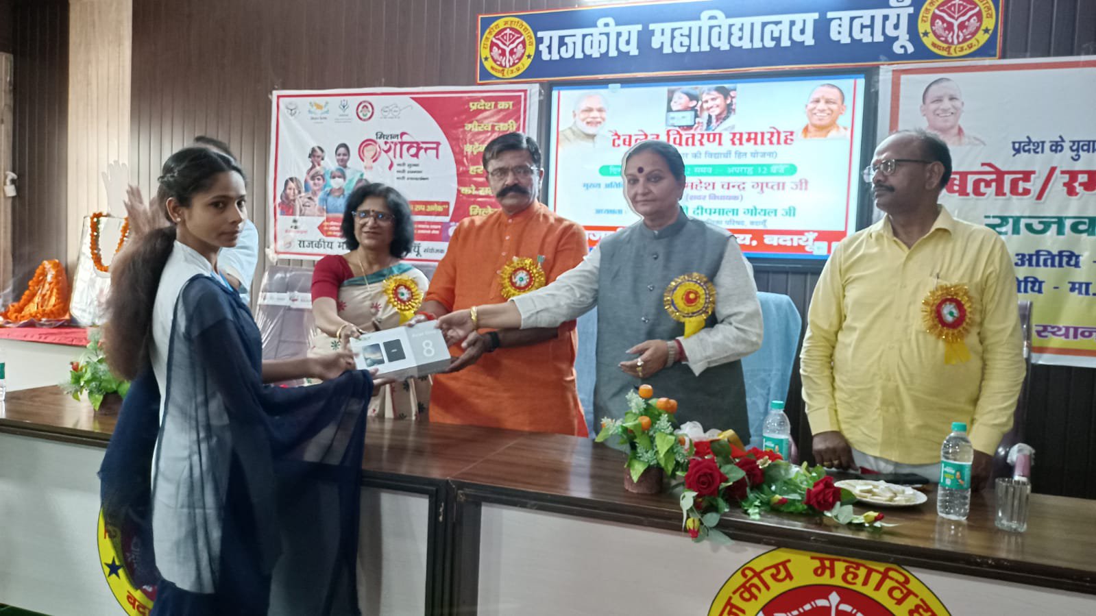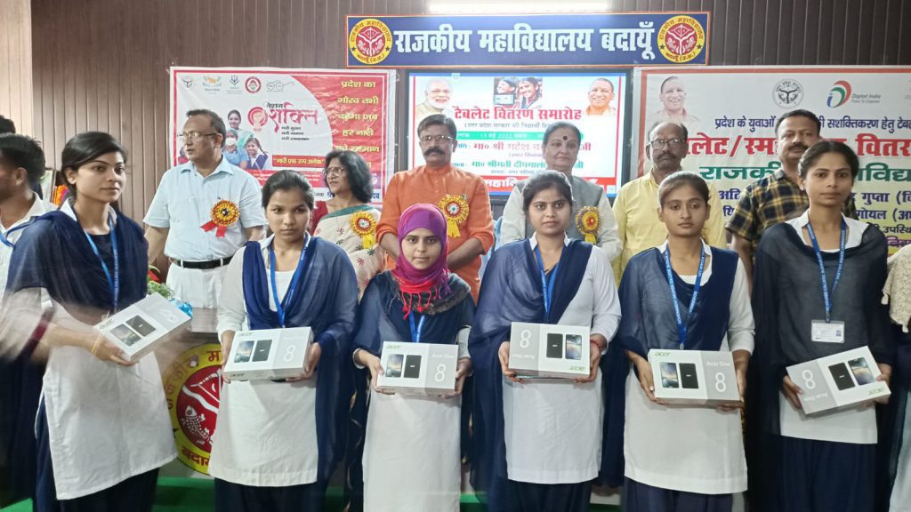 आवास विकास स्थित राजकीय महाविद्यालय बदायूं में स्नातकोत्तर अंतिम वर्ष के छात्र छात्राओं को टेबलेट वितरण समारोह आयोजित कर युवा तकनीकी सशक्तिकरण हेतु उत्तर प्रदेश सरकार के द्वारा टेबलेट वितरित किया गया।समारोह के मुख्य अतिथि सदर विधायक एवं पूर्व विकास राज्य मंत्री महेश चंद्र गुप्ता रहे।कार्यक्रम की अध्यक्षता नगर पालिका की चेयरमैन दीपमाला गोयल ने किया।